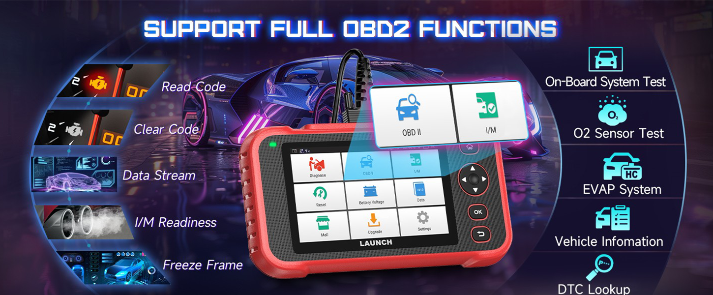 ✔️Vollständige 10 OBD2-Tests: für Fahrzeuge, die den OBDII/EOBD/JOBD/KOBD/CAN-Standards von 1996 entsprechen. Fehlercode lesen, Fehlercode löschen, Live-Daten, Fahrzeuginformationen lesen, O2-Sensortest, EVAP-Systemtest, On-Board-Mintor-Test, DTC-Code-Suche, IML-Fehleranzeige, Standbild anzeigen, I/M-Bereitschaft und Echtzeit hinzufügen Grafische Darstellung des Batteriestatus von Fahrzeugen...