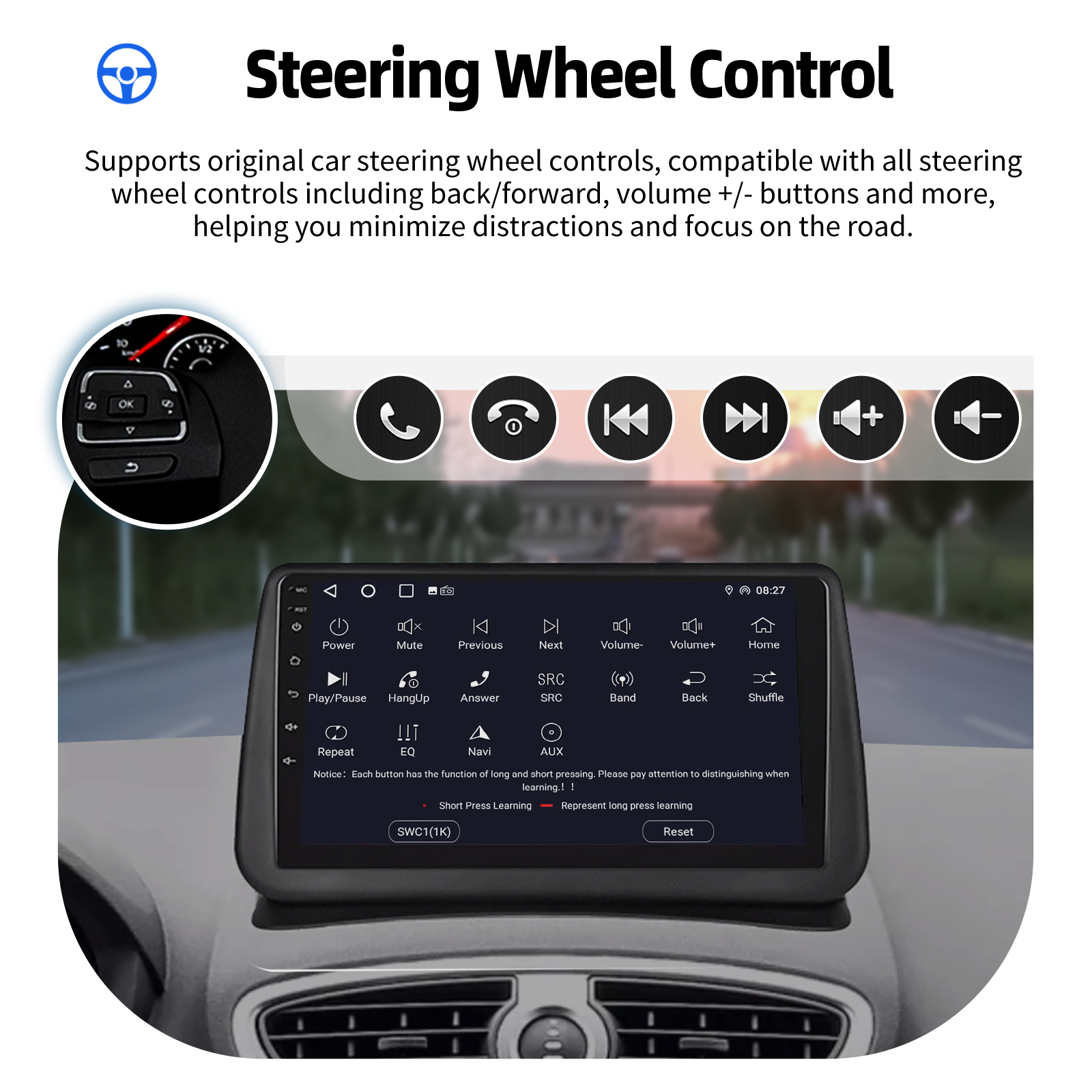 AHD Rear View Camera input & Steering Wheel Control: After connecting to the rear view camera. The radio automatically displays the reversing image as soon as you engage reverse gear. Make your daily reversing safer. Support AHD camera. Support original car steering wheel control (if your car doesn't support Canbus and YOU learn the steering wheel buttons) to make driving more convenient and safer.