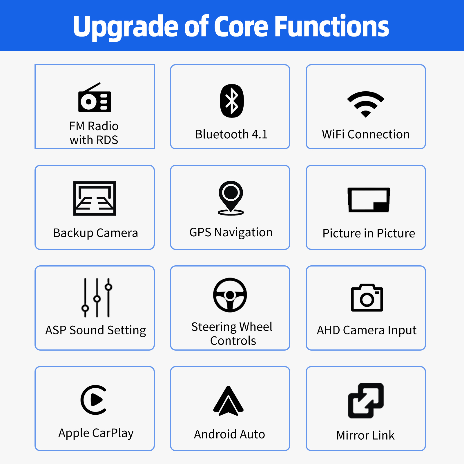 RDS/FM radio & Bluetooth & ASP Sound Setting: Supports Bluetooth 4.1, with built-in microphone so you can make hands-free calls while driving. Support access to phone book, music playback interface, etc. Support RDS. You can store 18 FM radio stations. Supports 32-band EQ adjustment, which can be adjusted according to your personal preference. Multimedia player supports ASP sound setting, high-fidelity, reproduced sound very similar to your original sound. 4 x 45W amplifier, surround sound and subwoofer output.