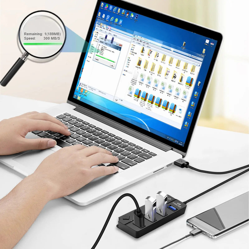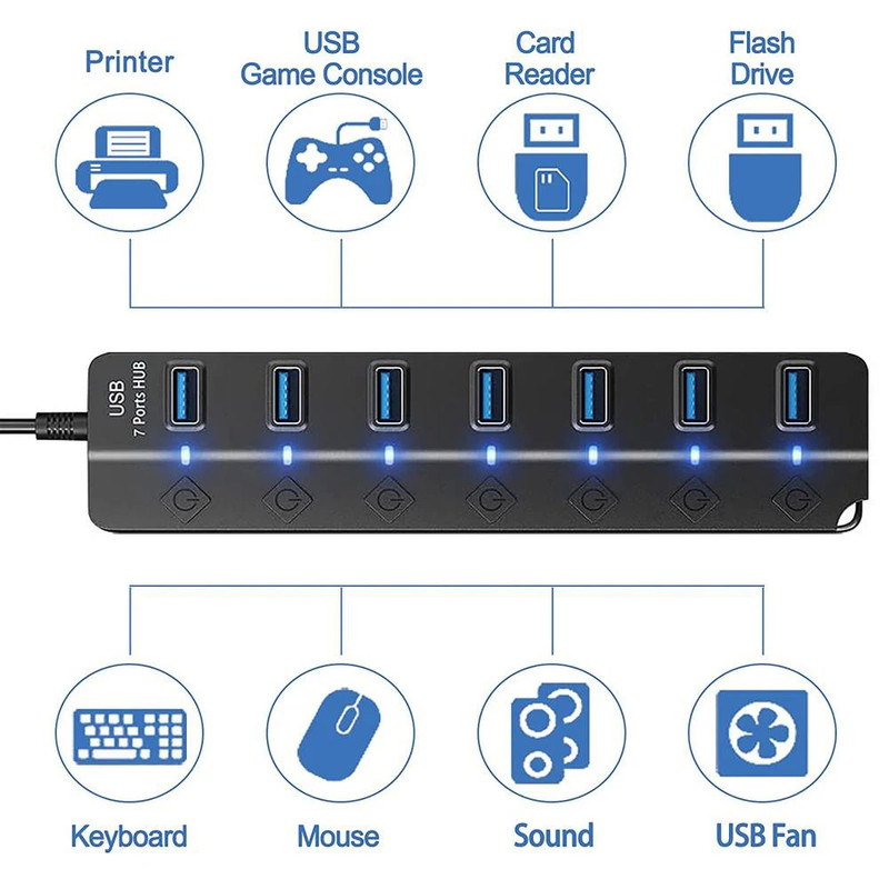 Simplifiez votre poste de travail et multipliez les connexions sans compromis sur la vitesse : ce hub USB 3.0 alimenté transforme 1 port USB en 4 ou 7 ports (selon modèle) avec prise en charge SuperSpeed 5 Gbit/s. Conçu pour être polyvalent et fiable, il offre des ports rapides pour clés, disques externes, clavier, souris, imprimante ou tout autre périphérique USB, avec rétrocompatibilité USB 2.0/1.1. Idéal pour bureau, maison, véhicule utilitaire ou utilisation nomade.