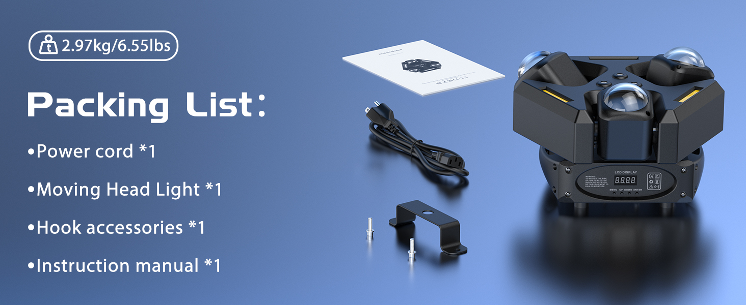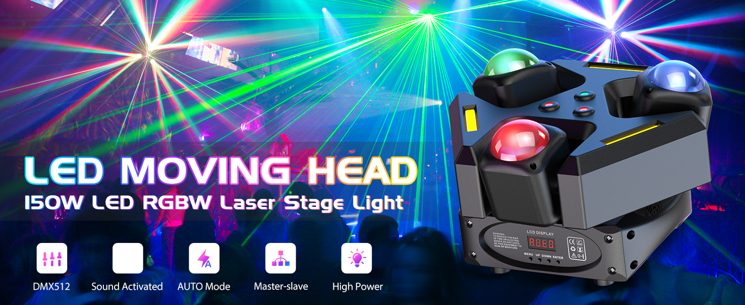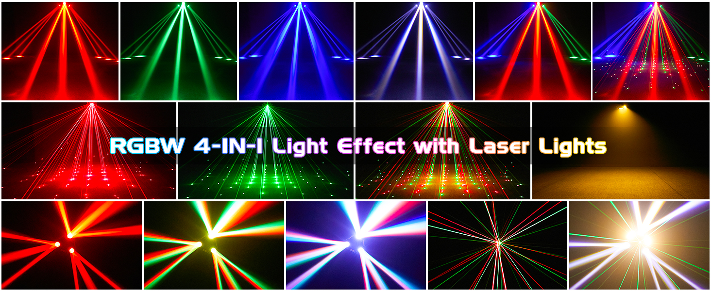 Light source:9PCS 12W RGB LED+3PCS 5W COB+2PCS 100MW Red Laser+1PCS 50MW Green Laser