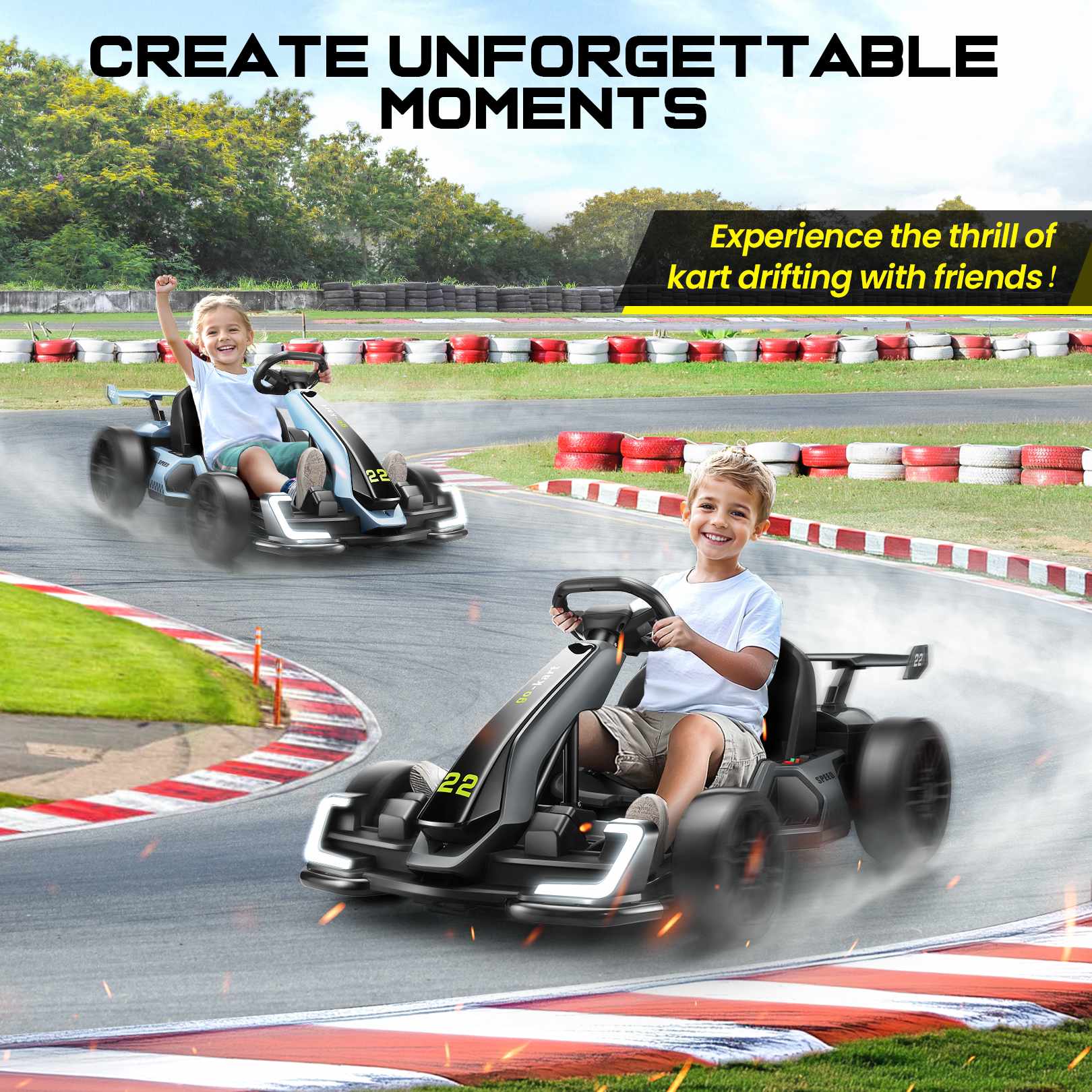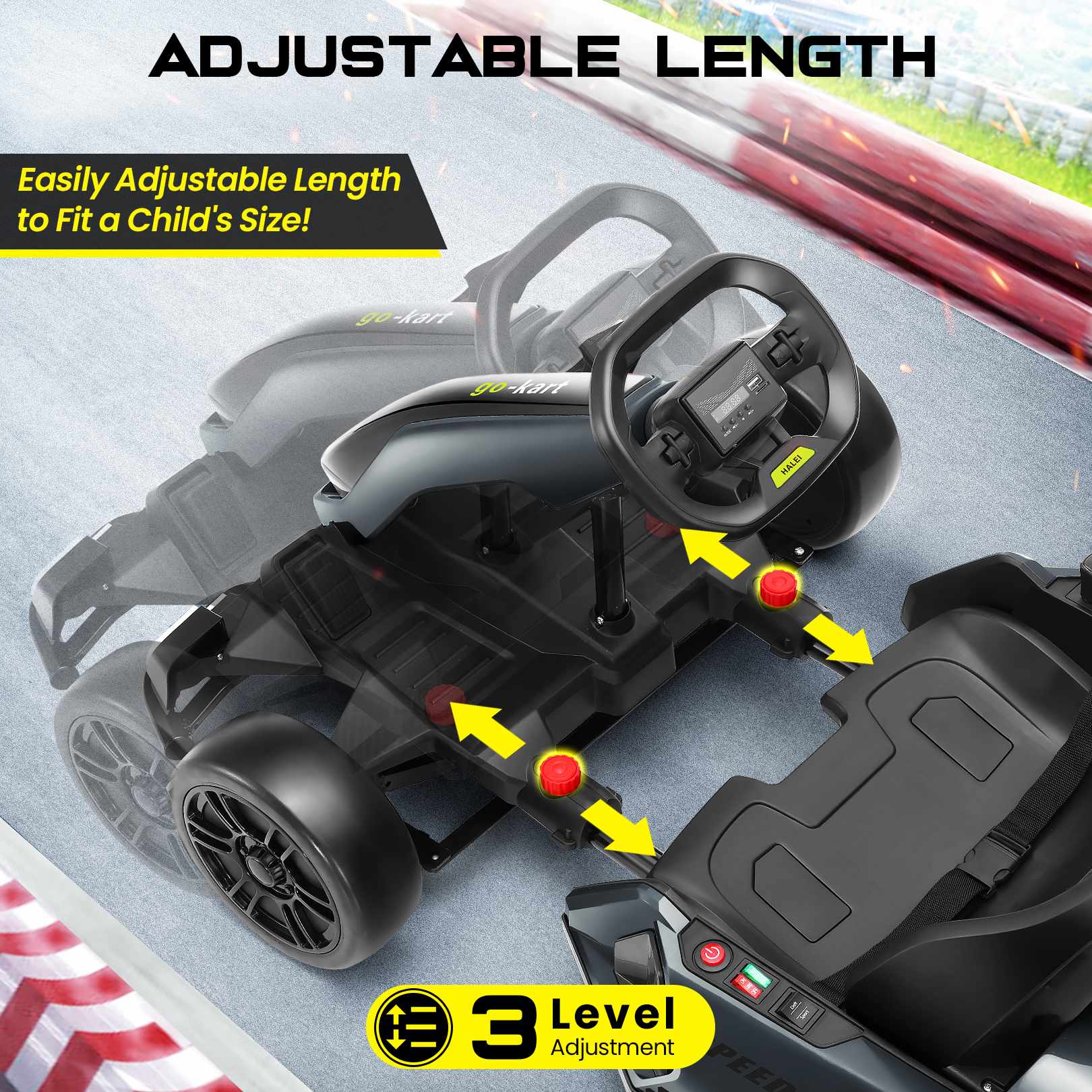 24V Electric Go Kart for Kids, Powerful Drift Kart with Adjustable Seat, 2x150 Motor Powerful Drift Kart, 7.5 Mph Speed, Drift/Sport Mode, Big Battery, Eva Tire,Length Adjustment for Outdoor Racing Toy for Ages 6-12