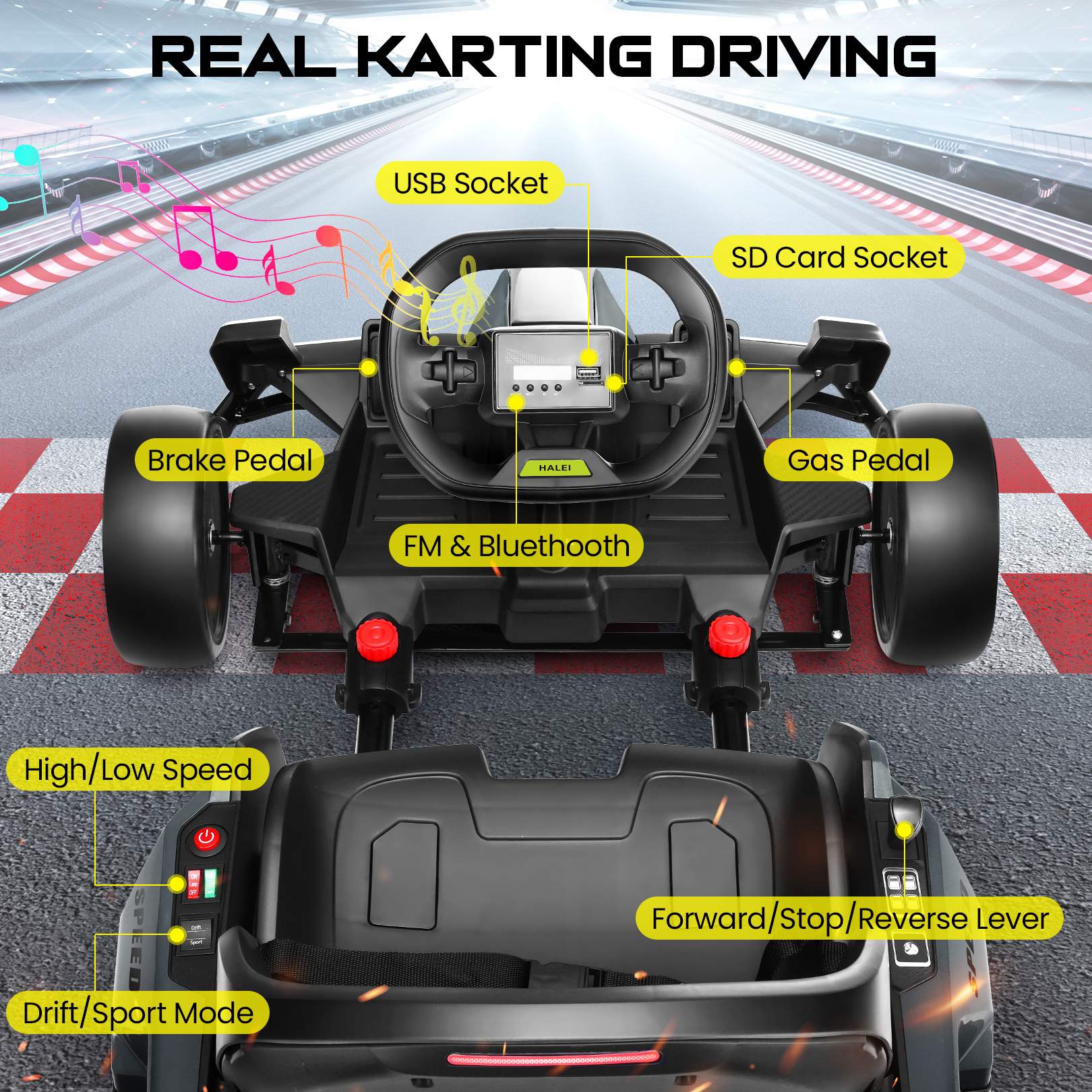 Power and Performance: Capable of reaching speeds of up to 7.5 MPH, this go-kart is powered by dual 150W electric motors that provide impressive performance.