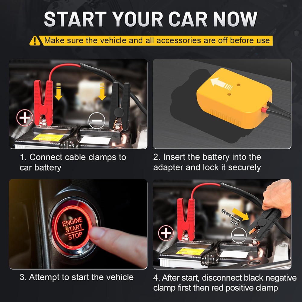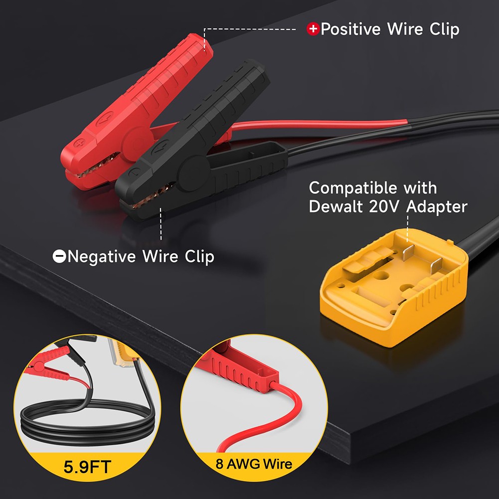 *Compatibility with for dewalt batteries: these for jump cable clamps are specifically designed to work seamlessly with for dewalt 20v batteries, providing a reliable solution for jump-starting your vehicle when needed.