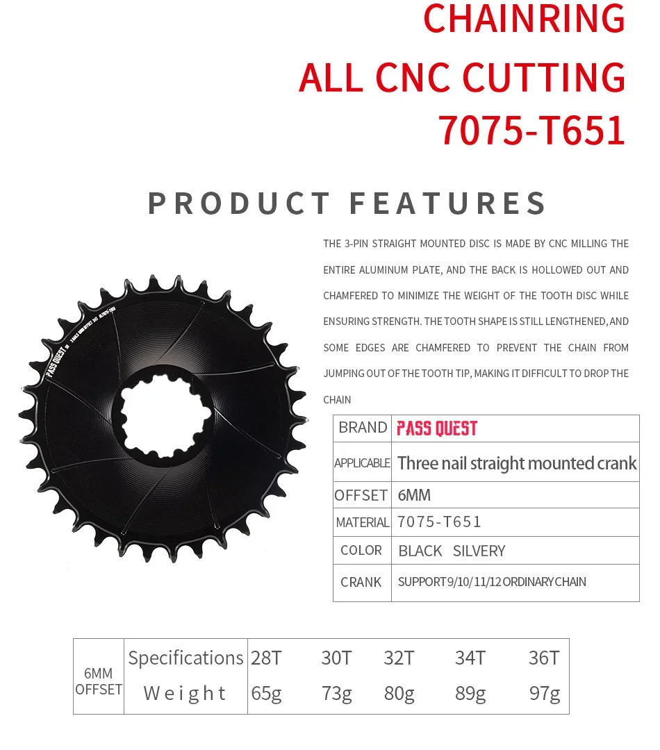 ·APPLICABLE:Three nail straight mounted crank ·OFFSET:6MM ·MATERI:AL7075-T651 ·CRANK:SUPPORT9/10/11/12 ORDINARY CHAIN