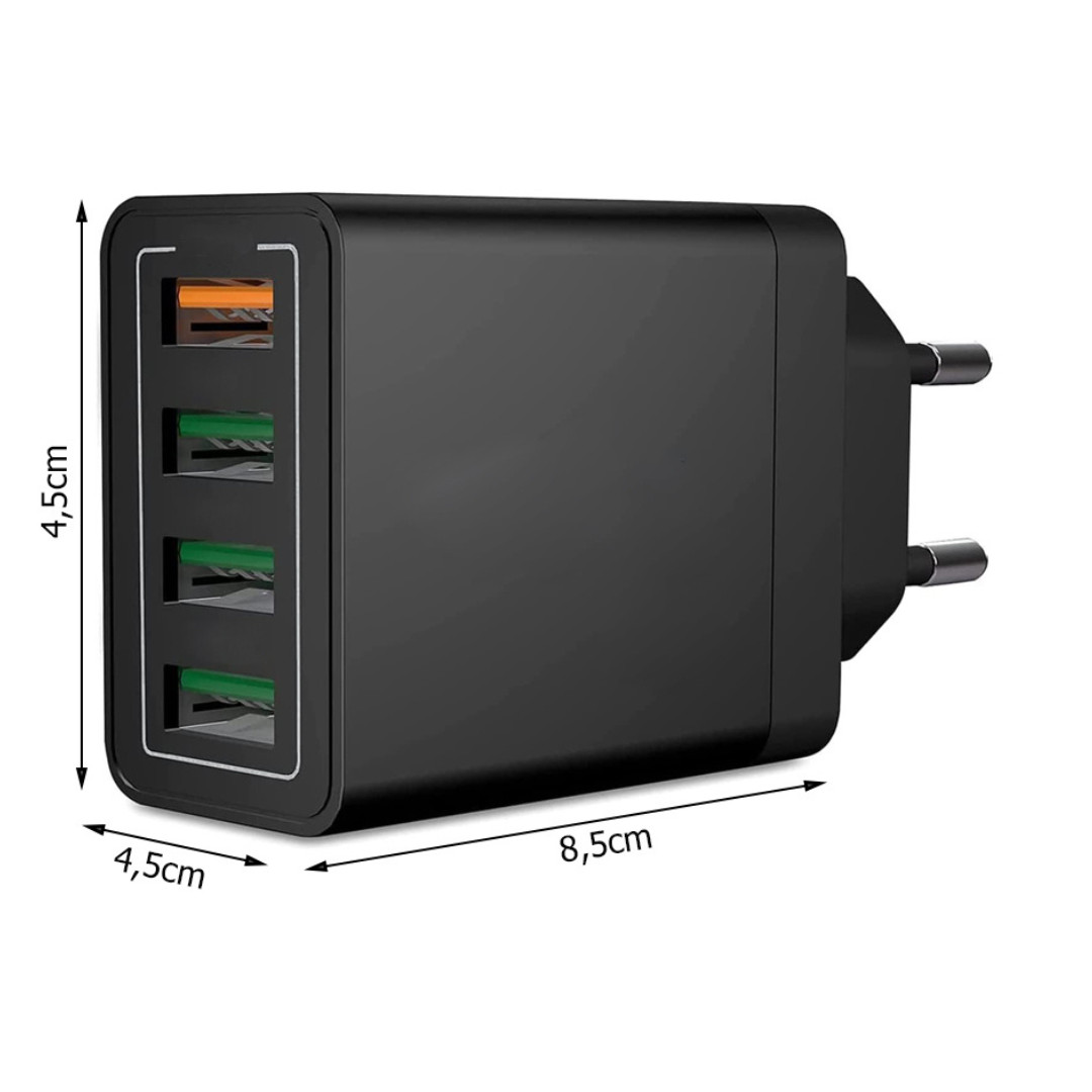• 4-fach USB-Ladegerät – Schnellladefunktion für Smartphones & Tablets
