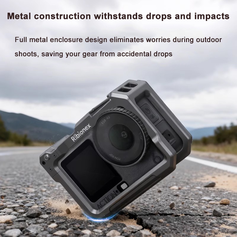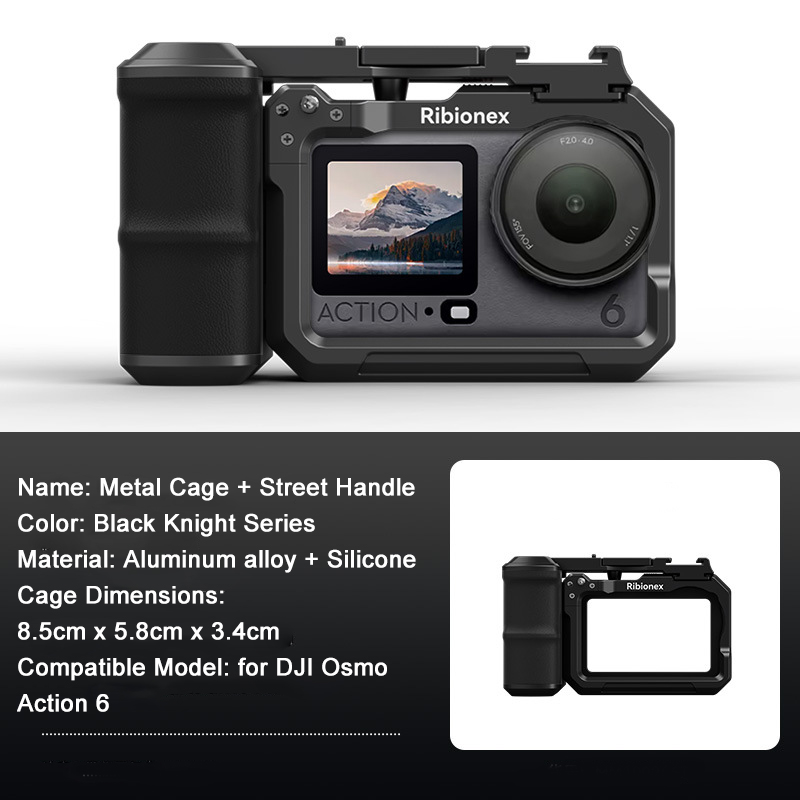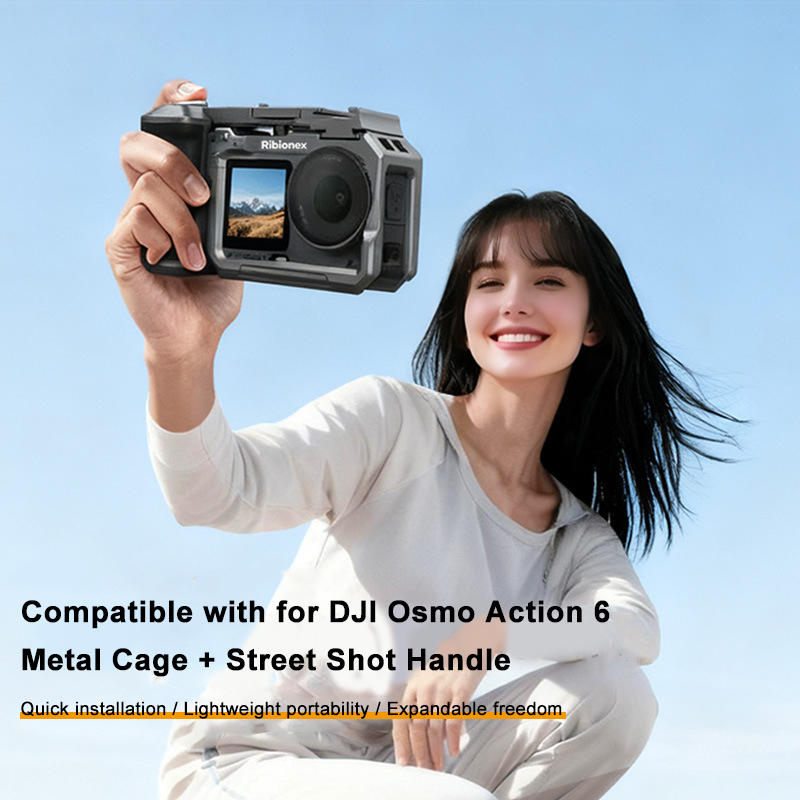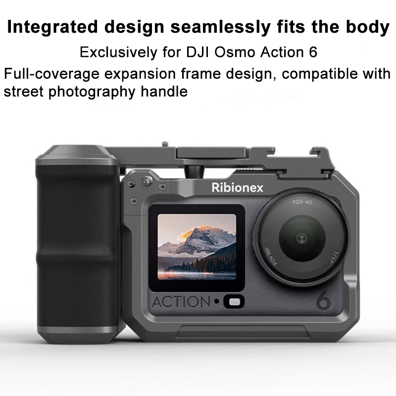 Integrated design hugs the camera body, specifically tailored for DJI Osmo Action 6. The cage's full-coverage design fits street photography handles.