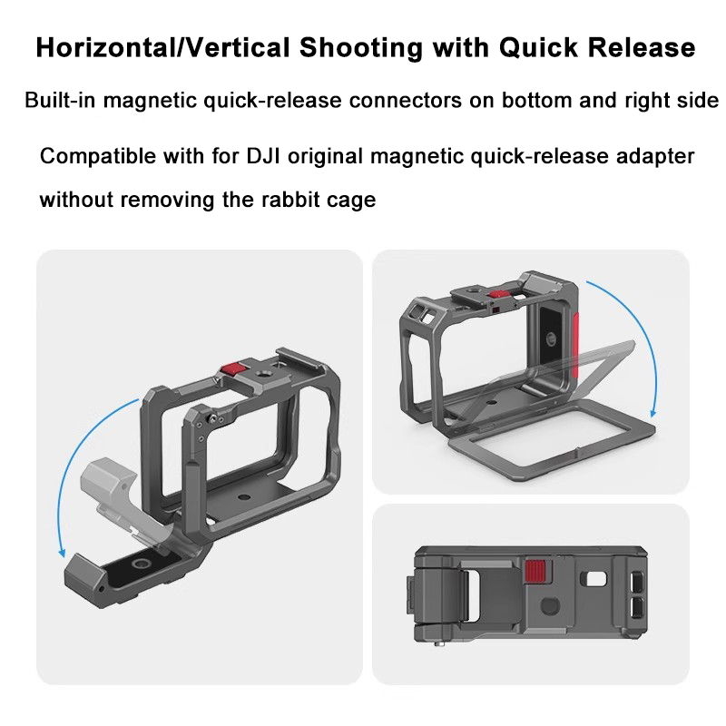 Compatible with for DJI original magnetic quick-release adapter without removing the cage.