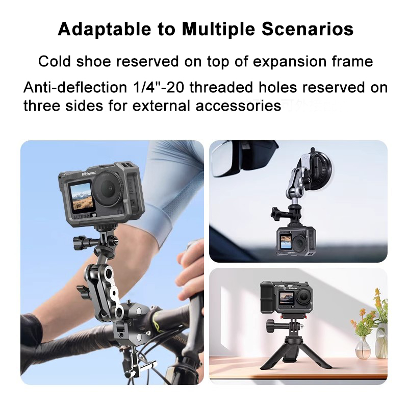 Adaptable to multiple scenarios, the top of the expansion frame features a reserved cold shoe mount. Anti-rotation 1/4-inch threaded holes are provided on three sides for attaching external accessories.