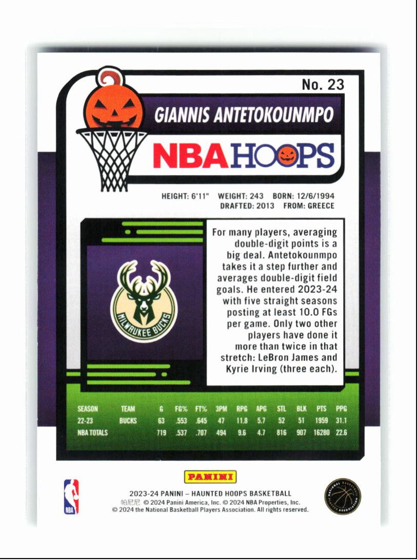 2023-24 Panini Haunted Hoops Slime 5 Cards Giannis Antetokounmpo Milwaukee Bucks