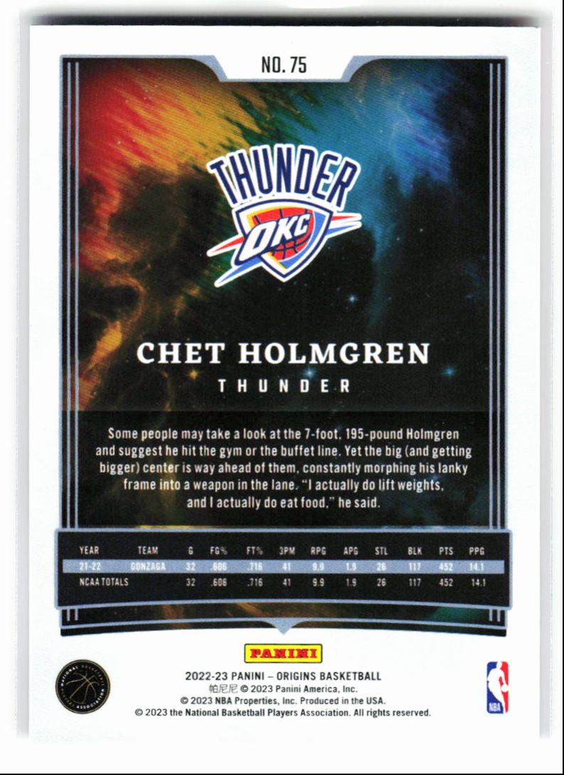 2022-23 Panini Origins 3 5 Cards Chet Holmgren RC Oklahoma City Thunder