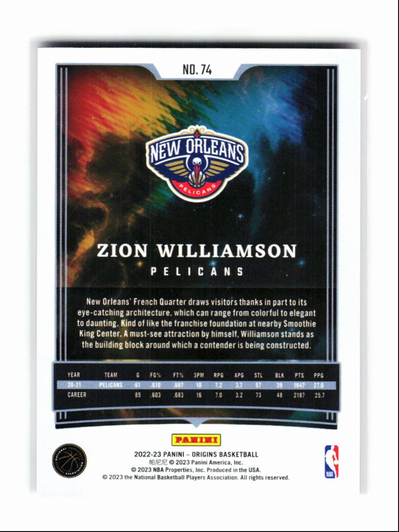 2022-23 Panini Origins 2 5 Cards Zion Williamson New Orleans Pelicans