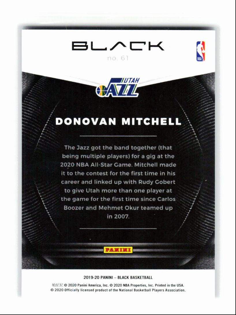 2019-20 Panini Black Silver Donovan Mitchell 26/65 Utah Jazz