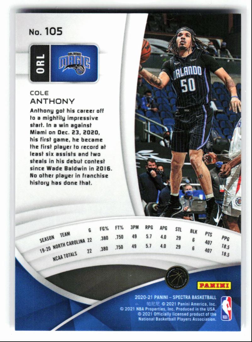 2020-21 Panini Spectra 2 Cole Anthony RC Orlando Magic