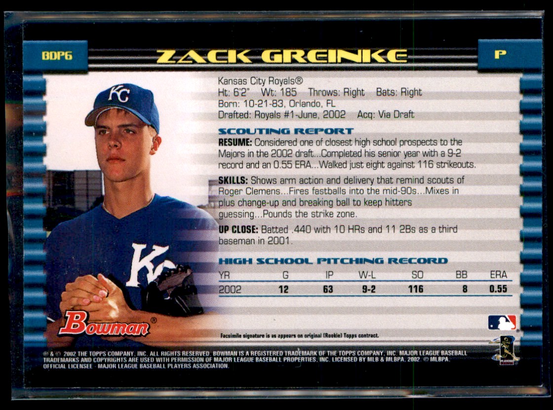 2002 Bowman Zack Greinke Rookie Kansas City Royals #BDP6