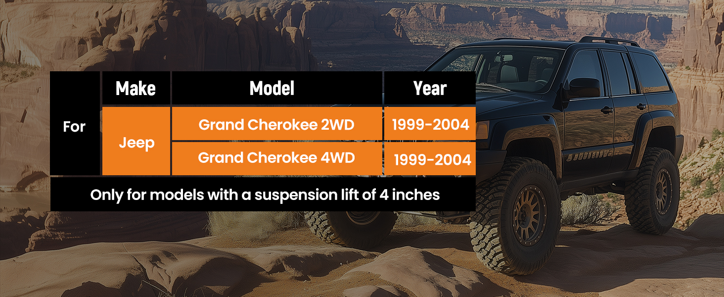 Note: ONLY fits models equipped with 4-inch of suspension lift.