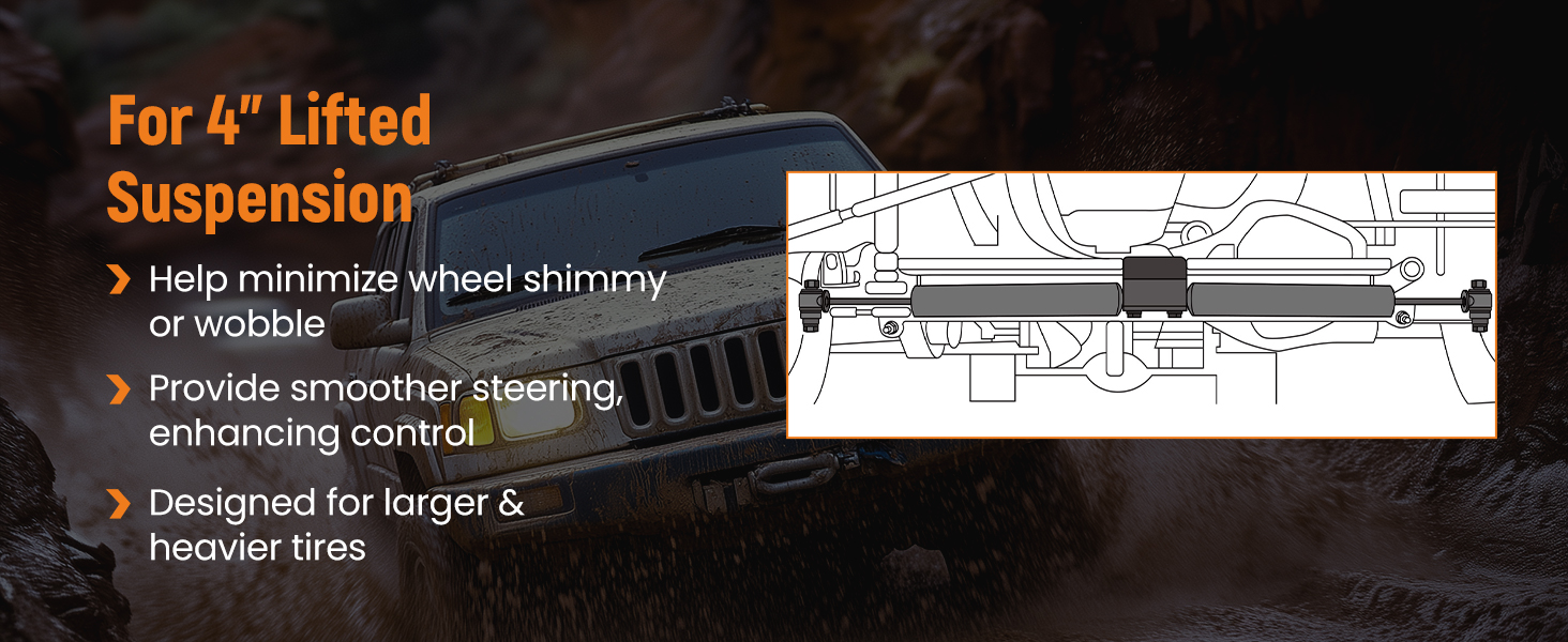 Front Dual Steering Stabilizer Kit for Jeep Grand Cherokee 1999-2004 4" Lifted
