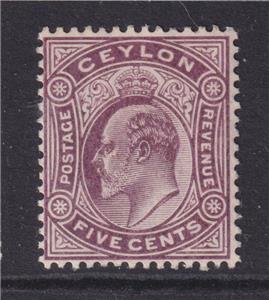 CEYLON, 1905 KEVII, Mult. Crown CA, Chalky paper, 5c. Dull Purple, lhm.