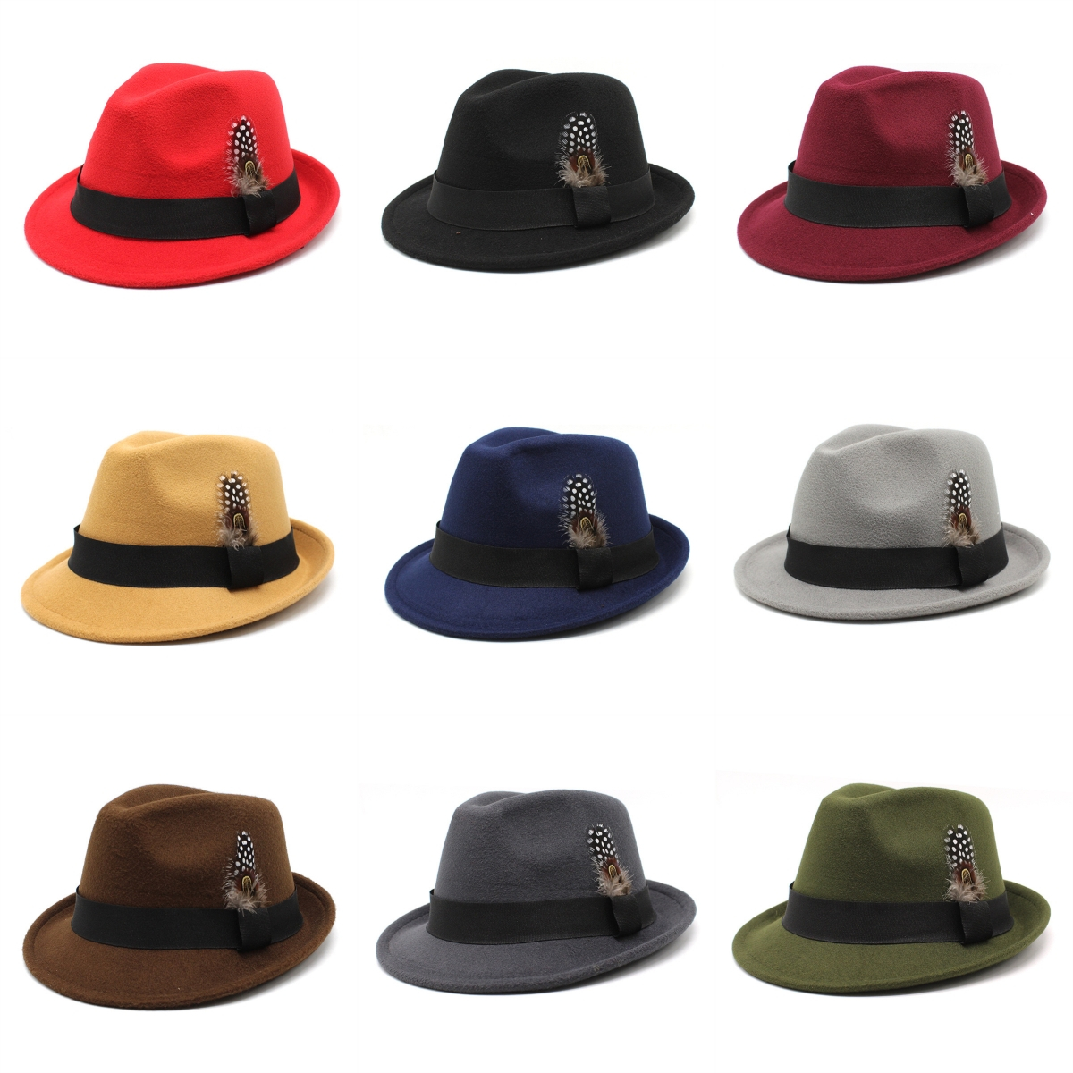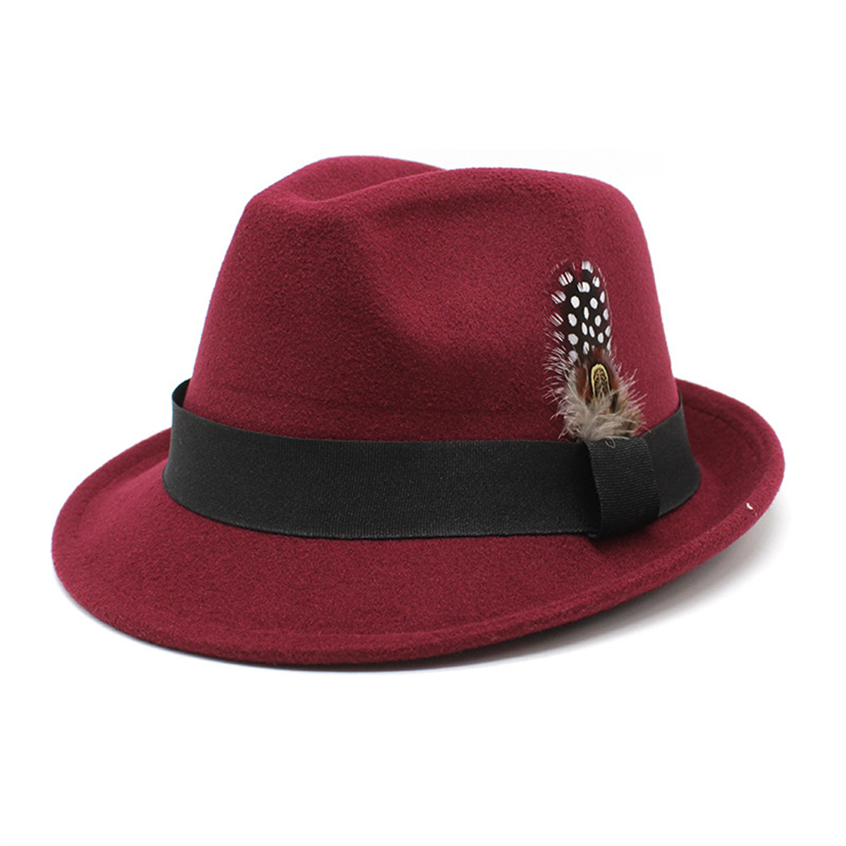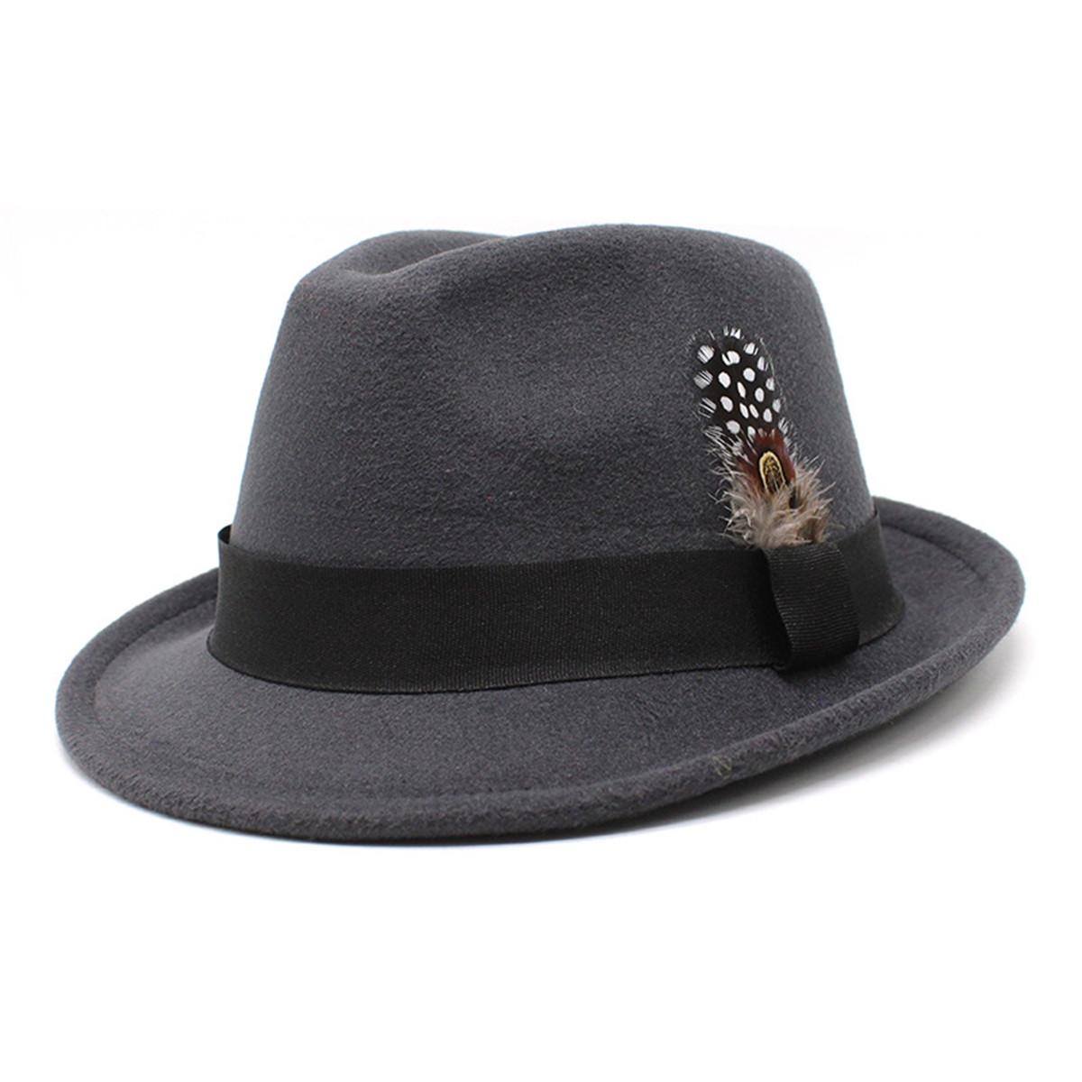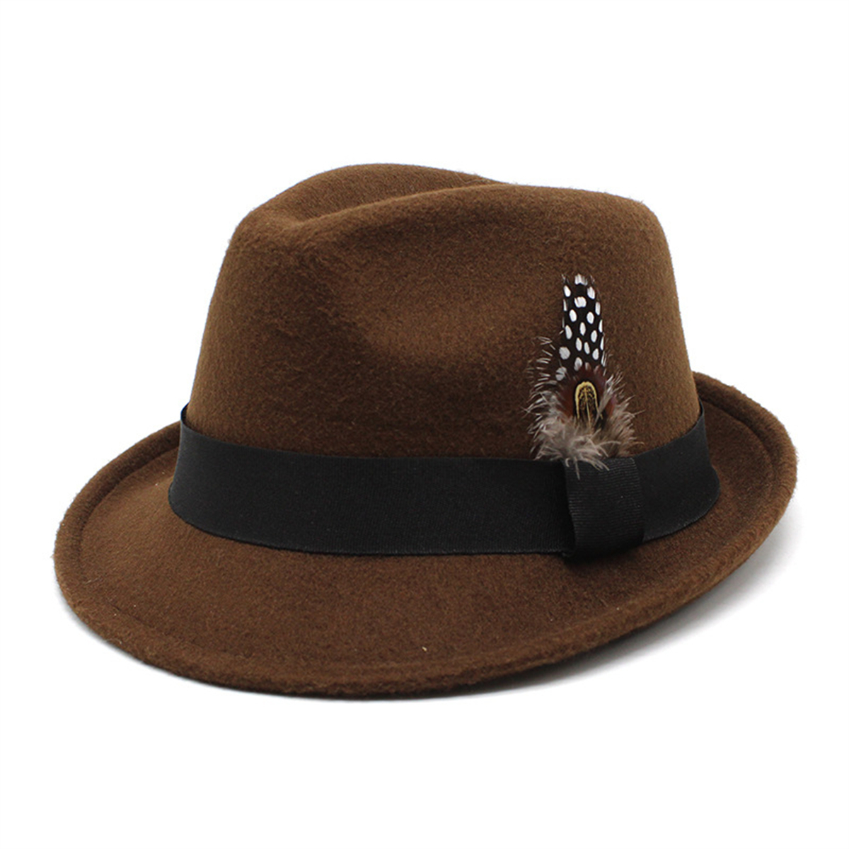 Classic Panama Jazz Top Hat Short Brim Trilby Hat Gentleman Jazz Cap Feather