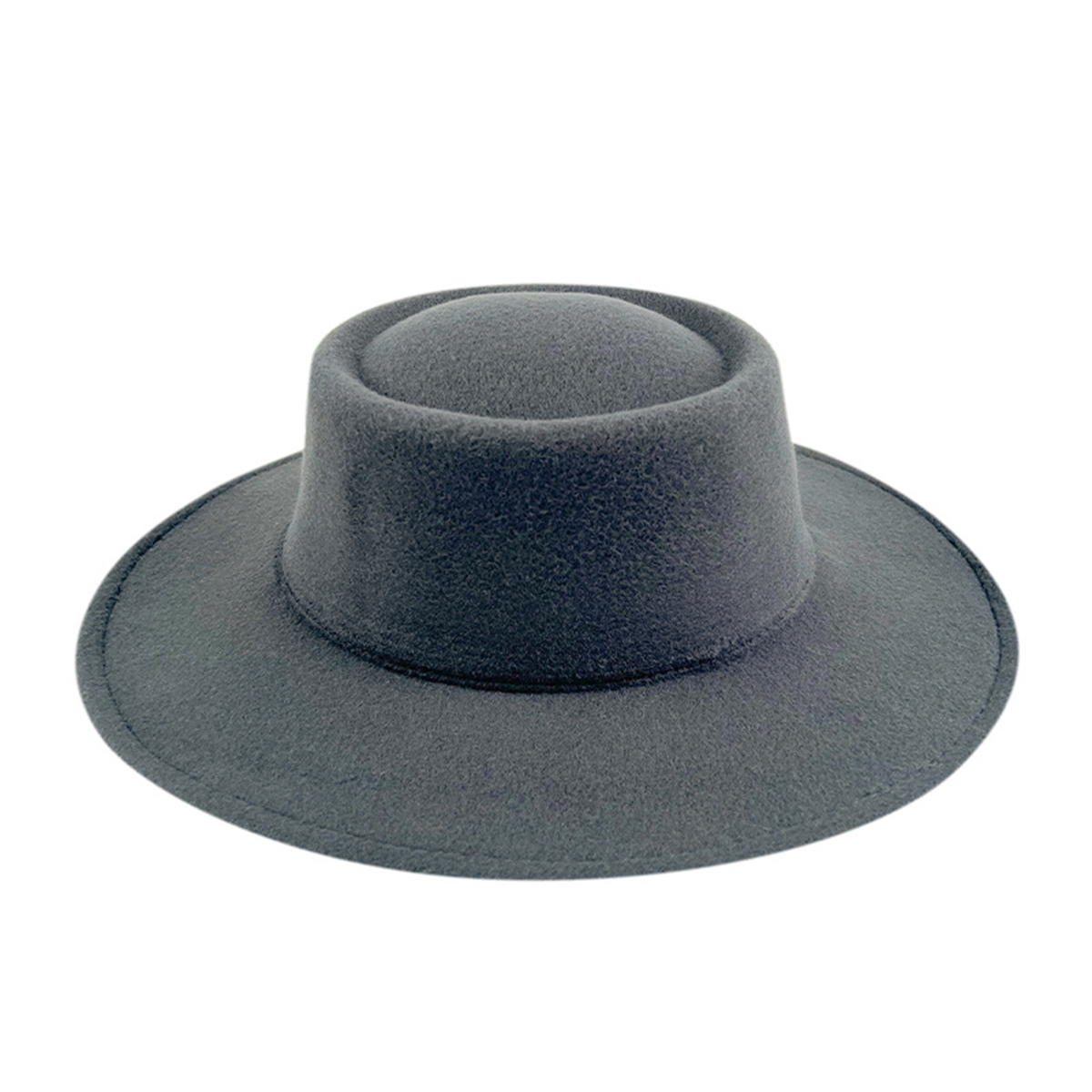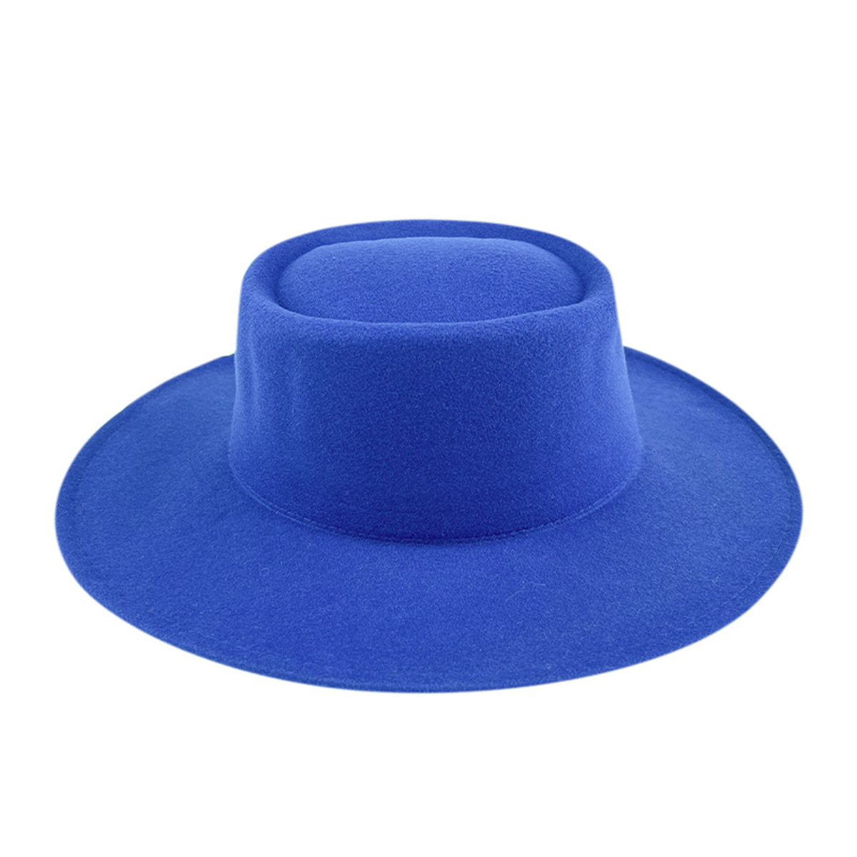 Men Women Elegant Large Wide Brim Felt Flat Top Hat Panama Church Derby Top Hat