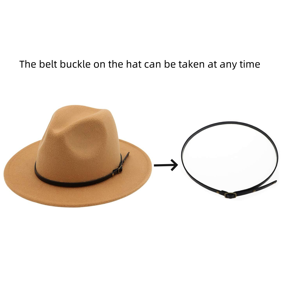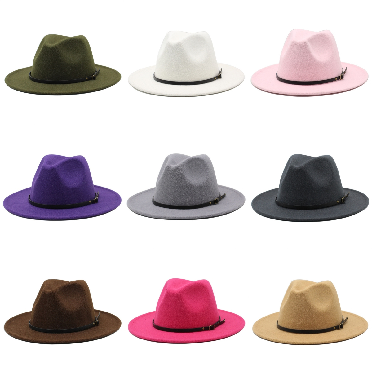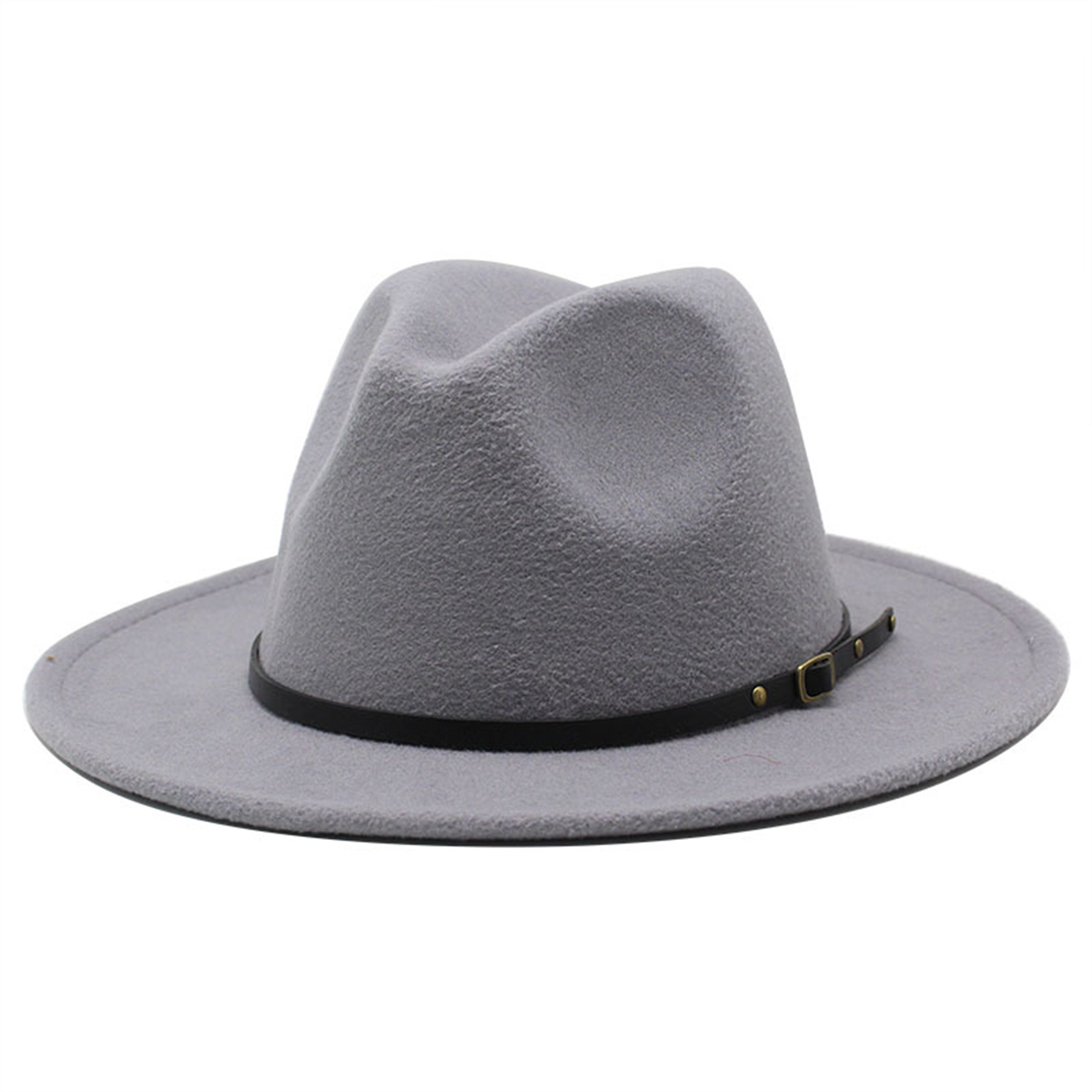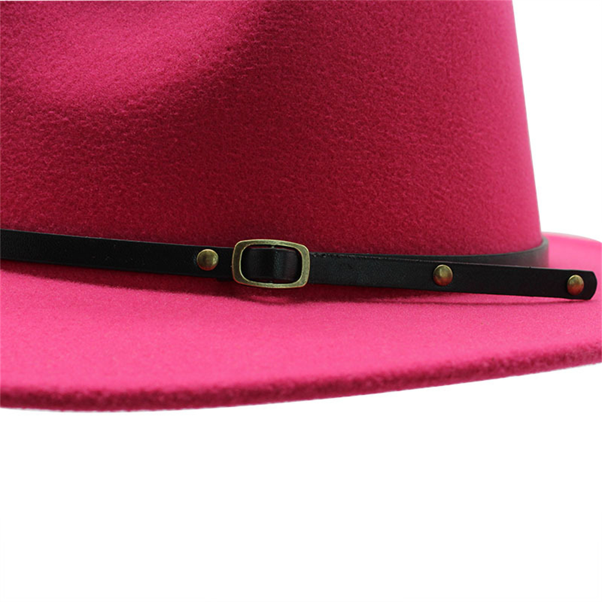 Wide Brim Felt Fedora Jazz Hat Panama Trilby Cap w Belt Buckle for Men Women