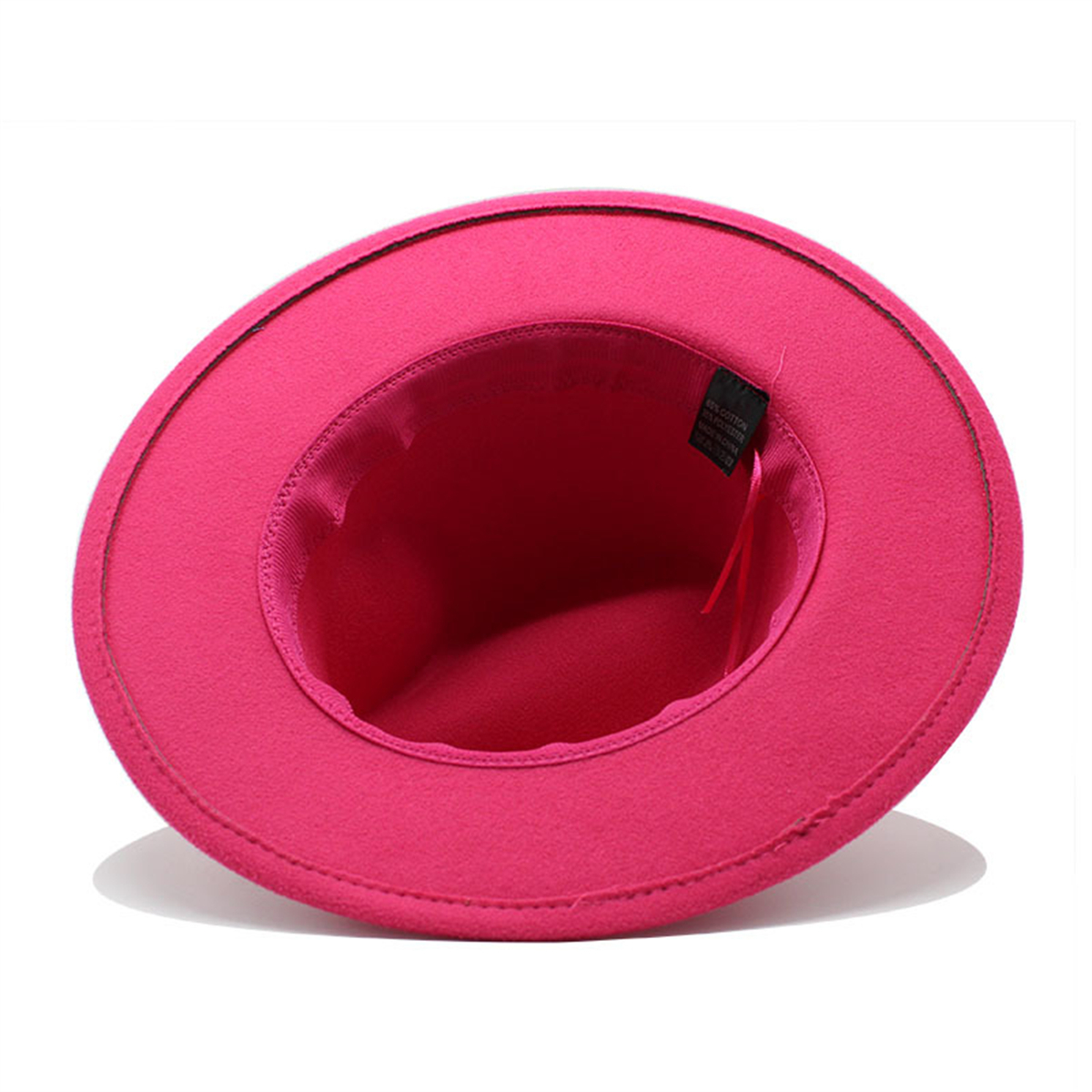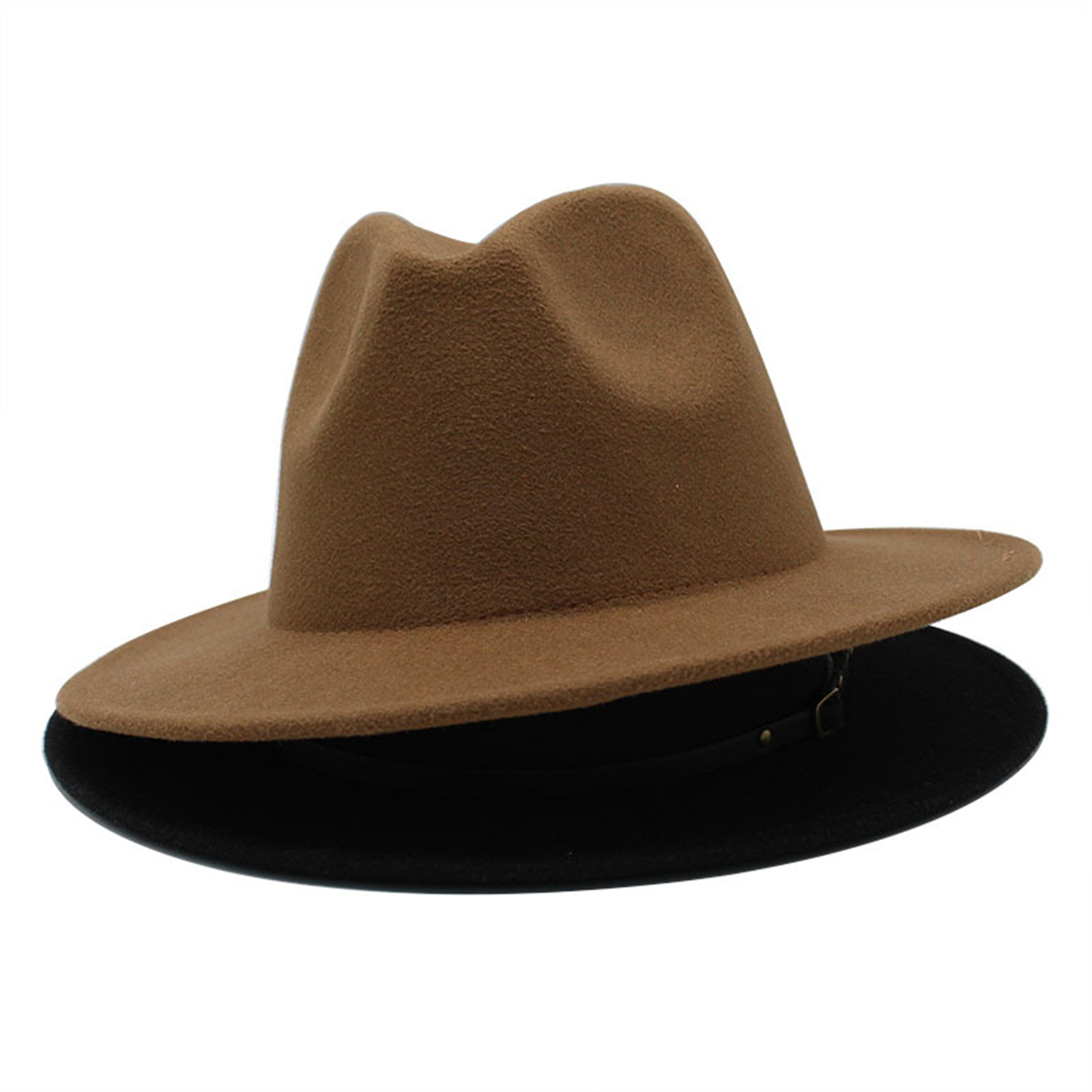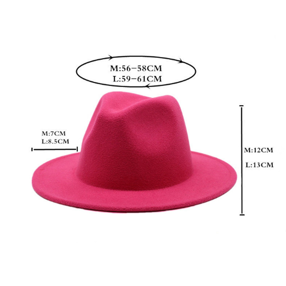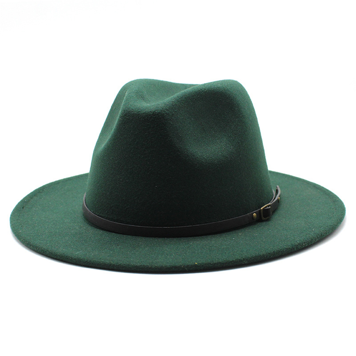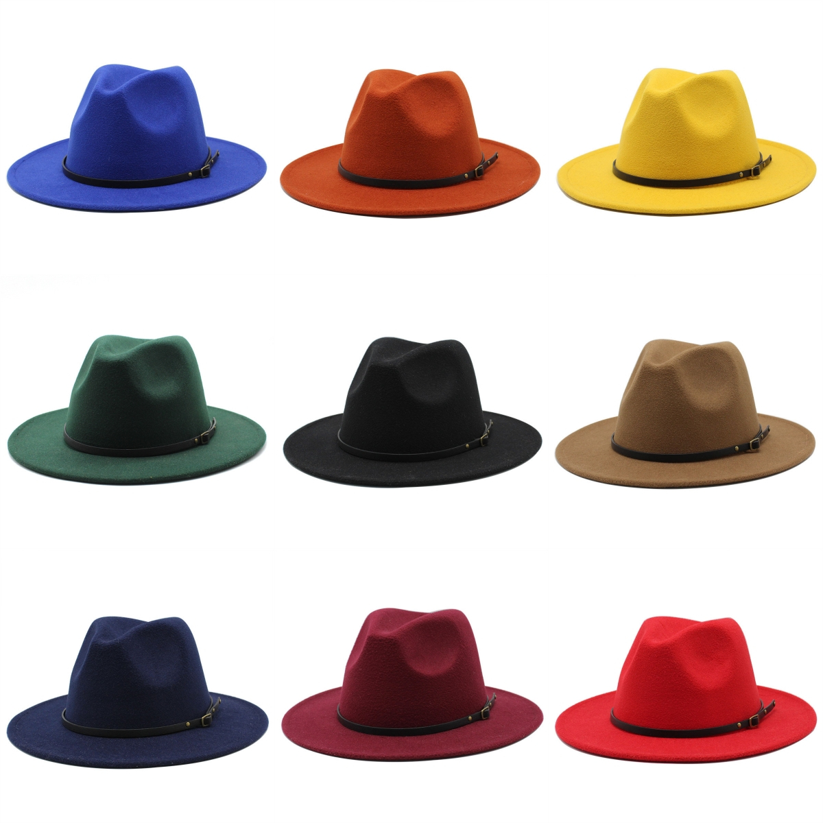 Wide Brim Felt Fedora Jazz Hat Panama Trilby Cap w Belt Buckle for Men Women