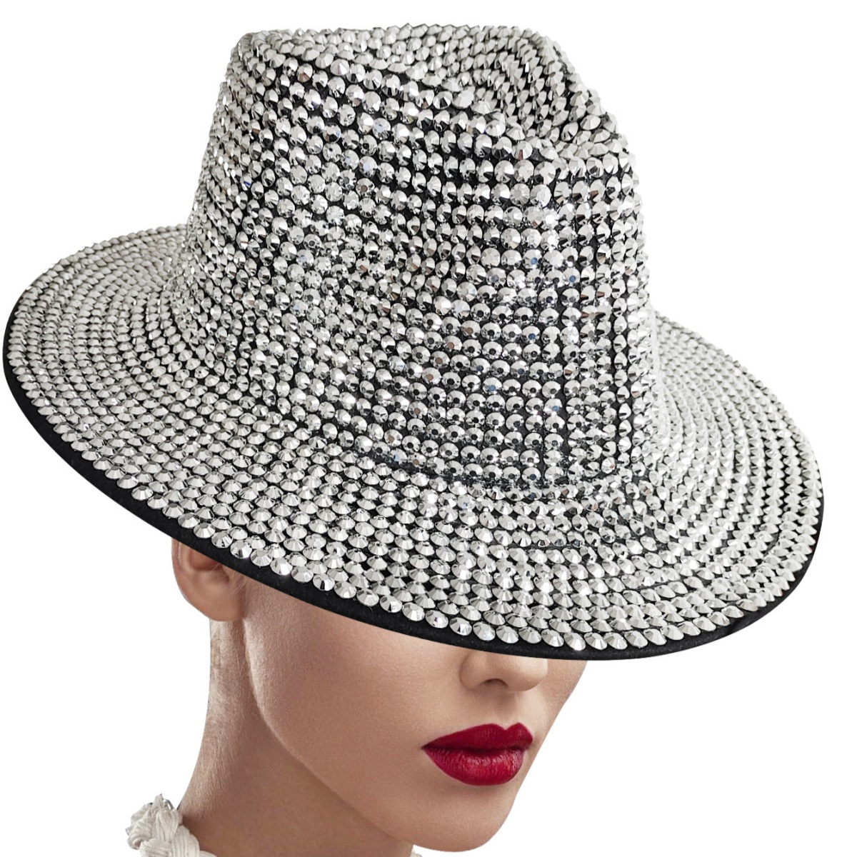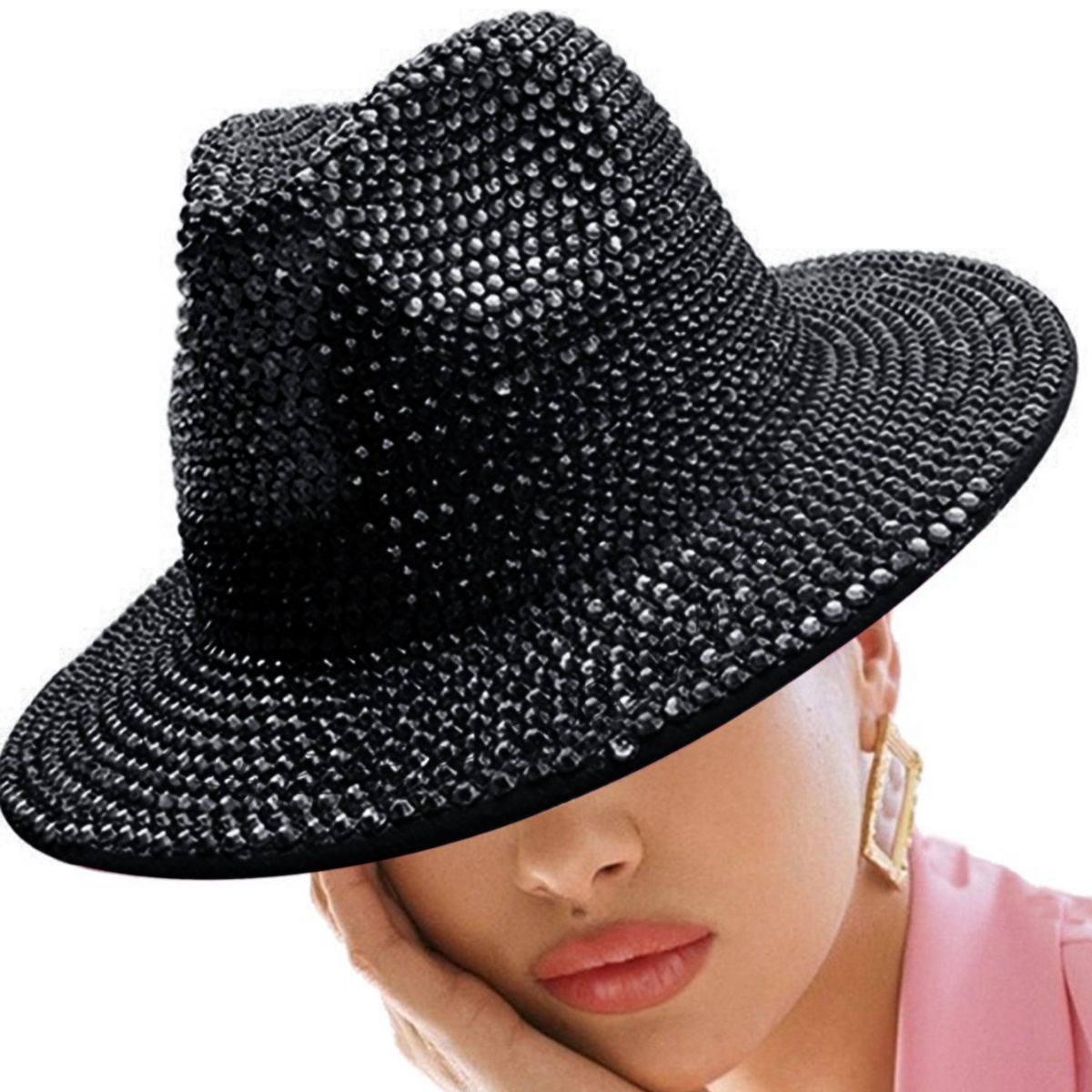 2.Bling rhinestone studs are decorated all around the hat, giving it a flashy and fashionable appearance that's perfect