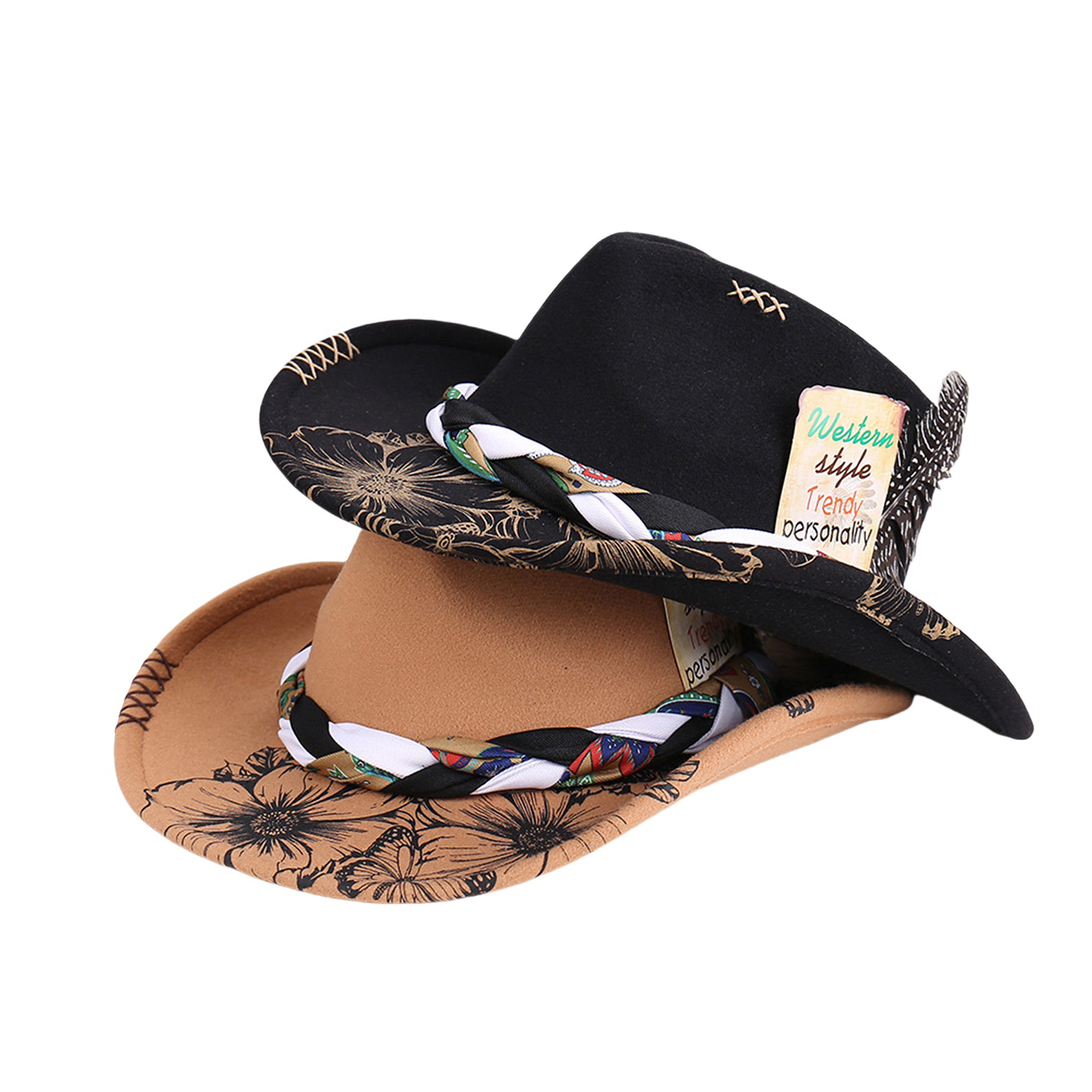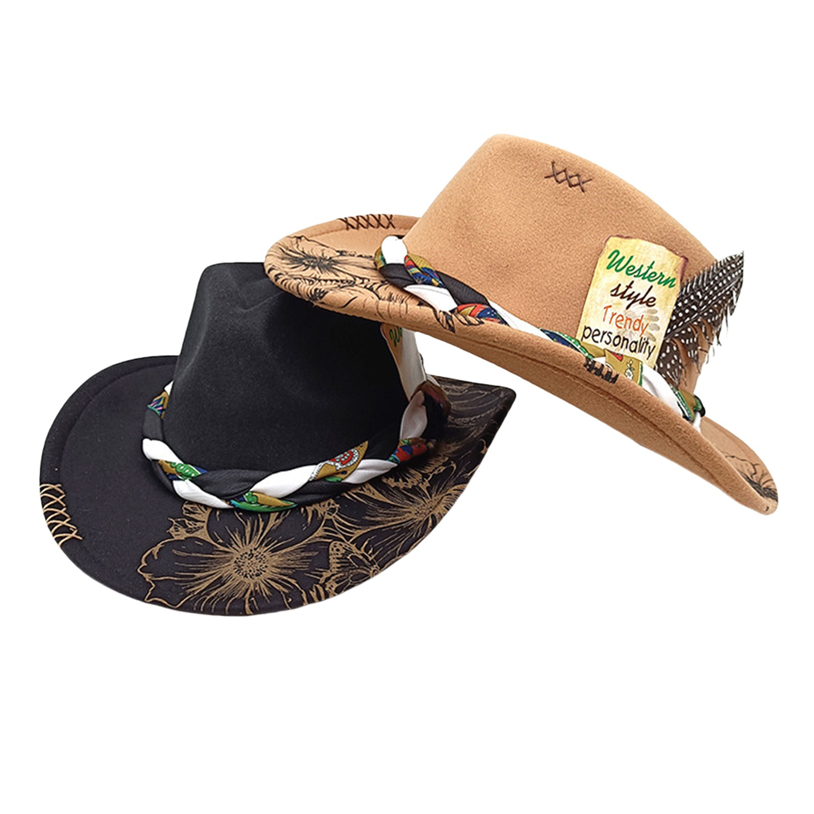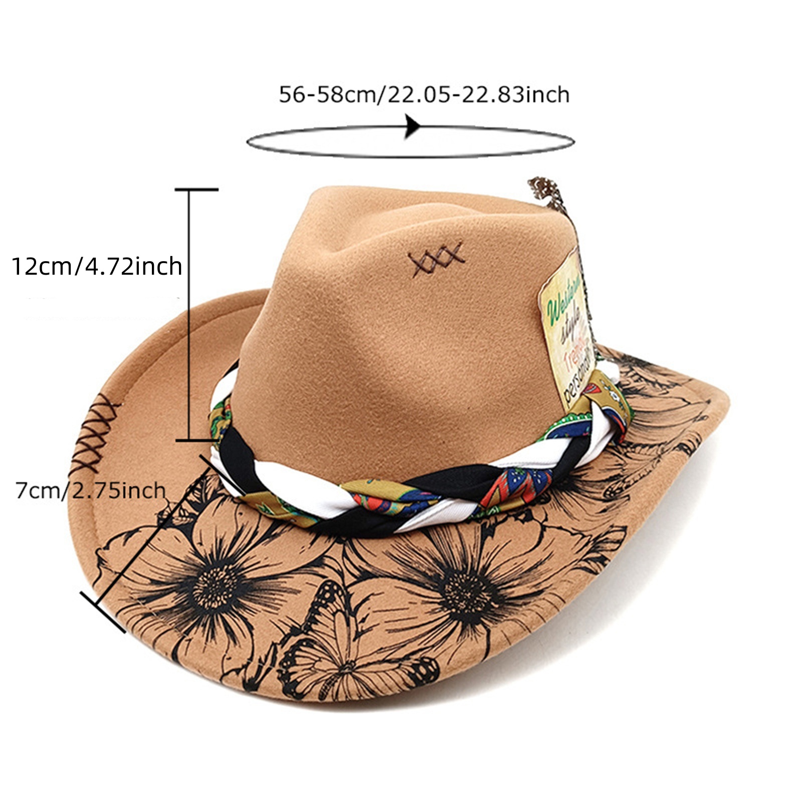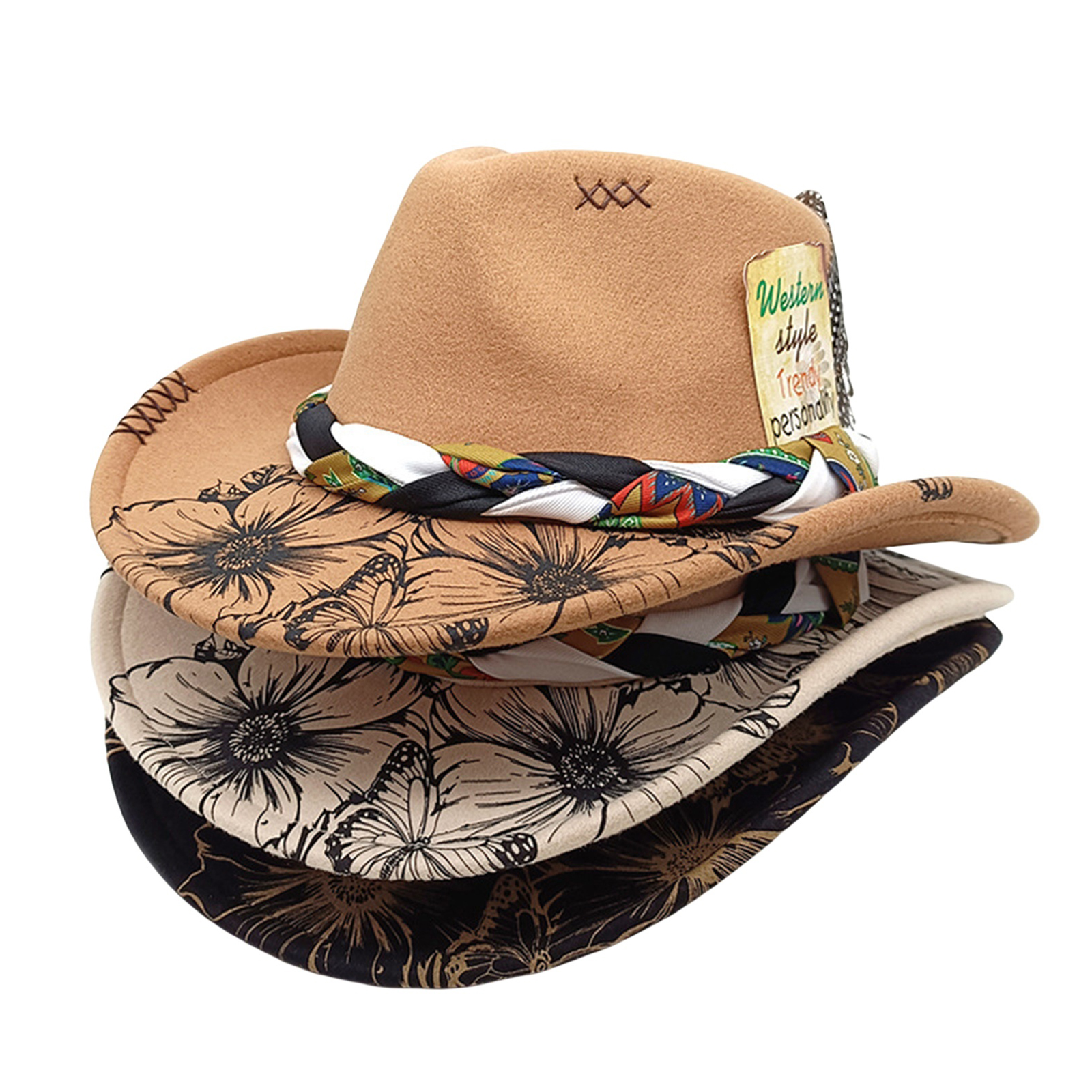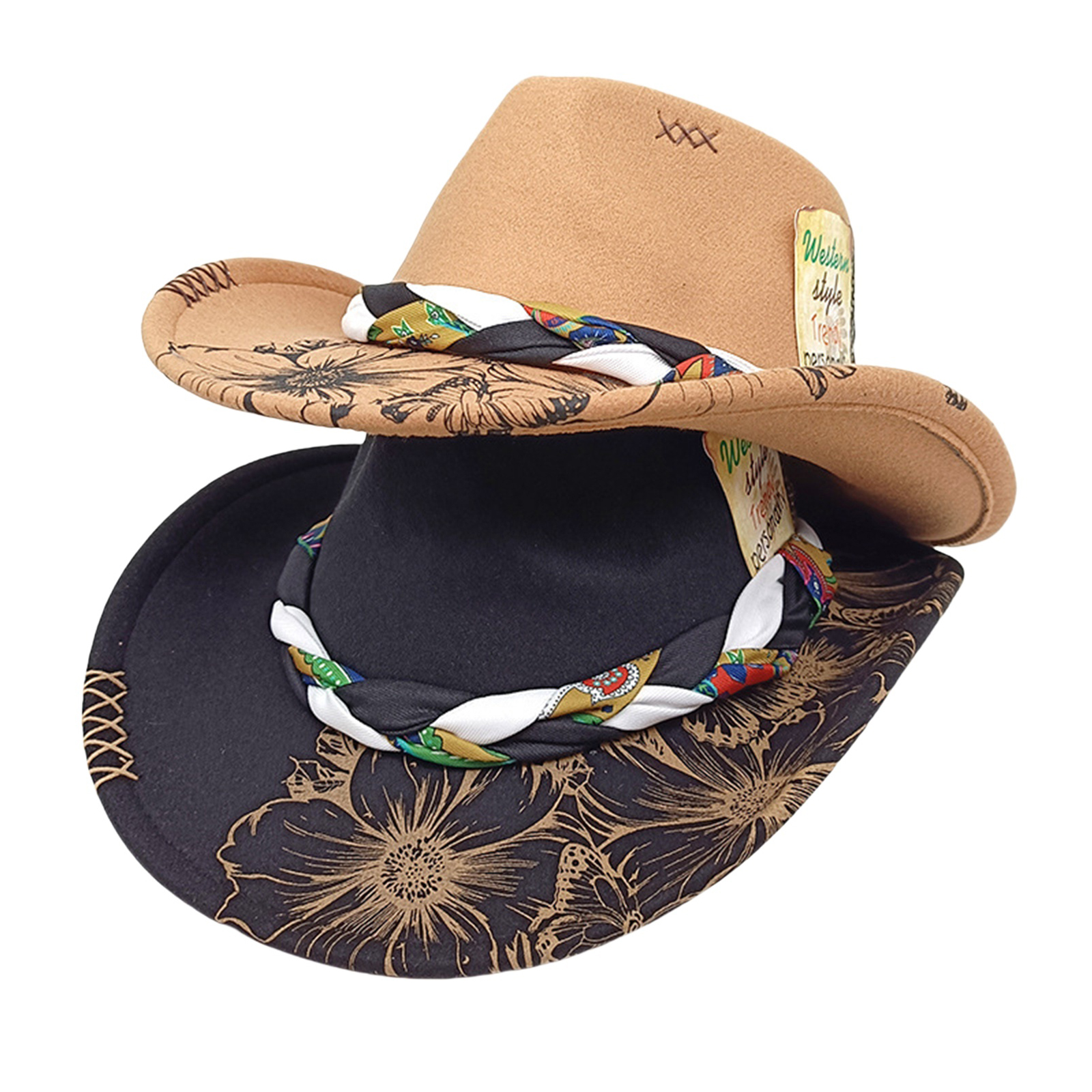 3.Classic design: the cowboy hat is decorated with fashionable printed ribbon, and the wide-brimmed