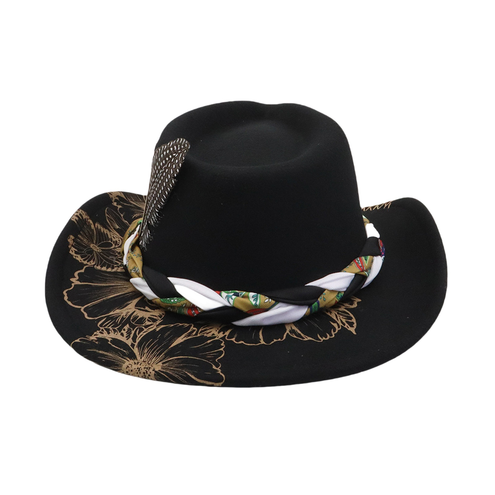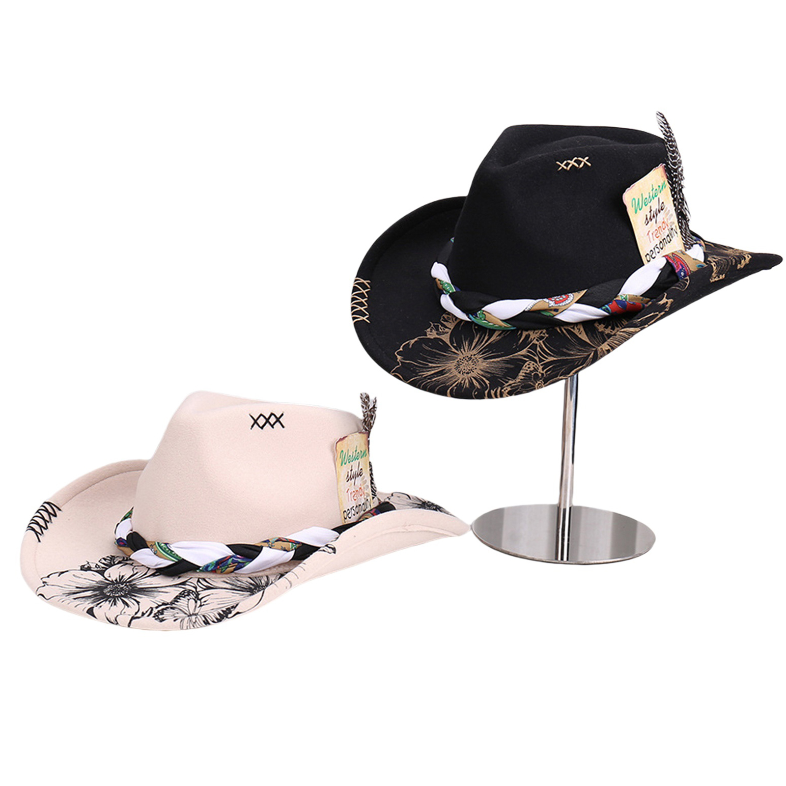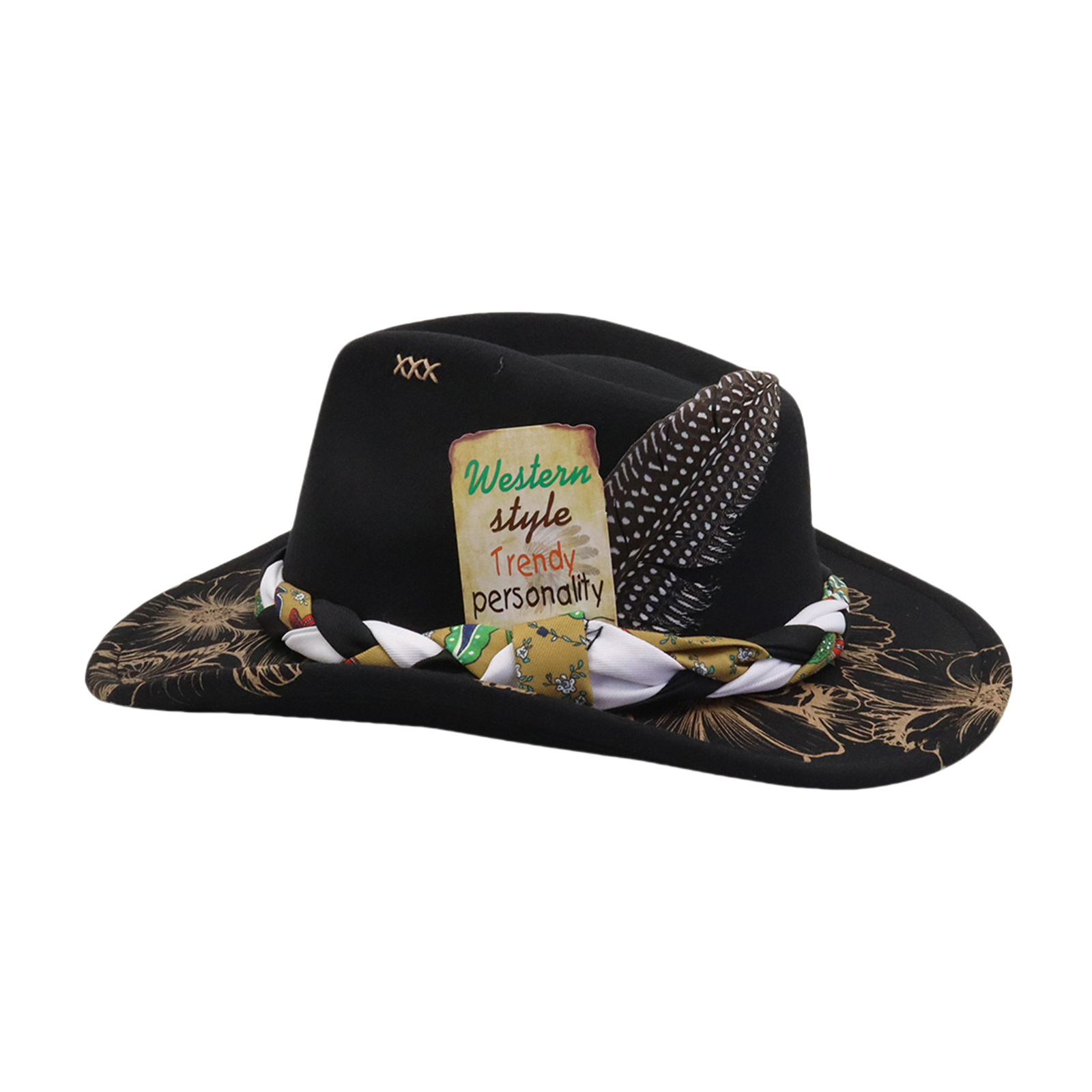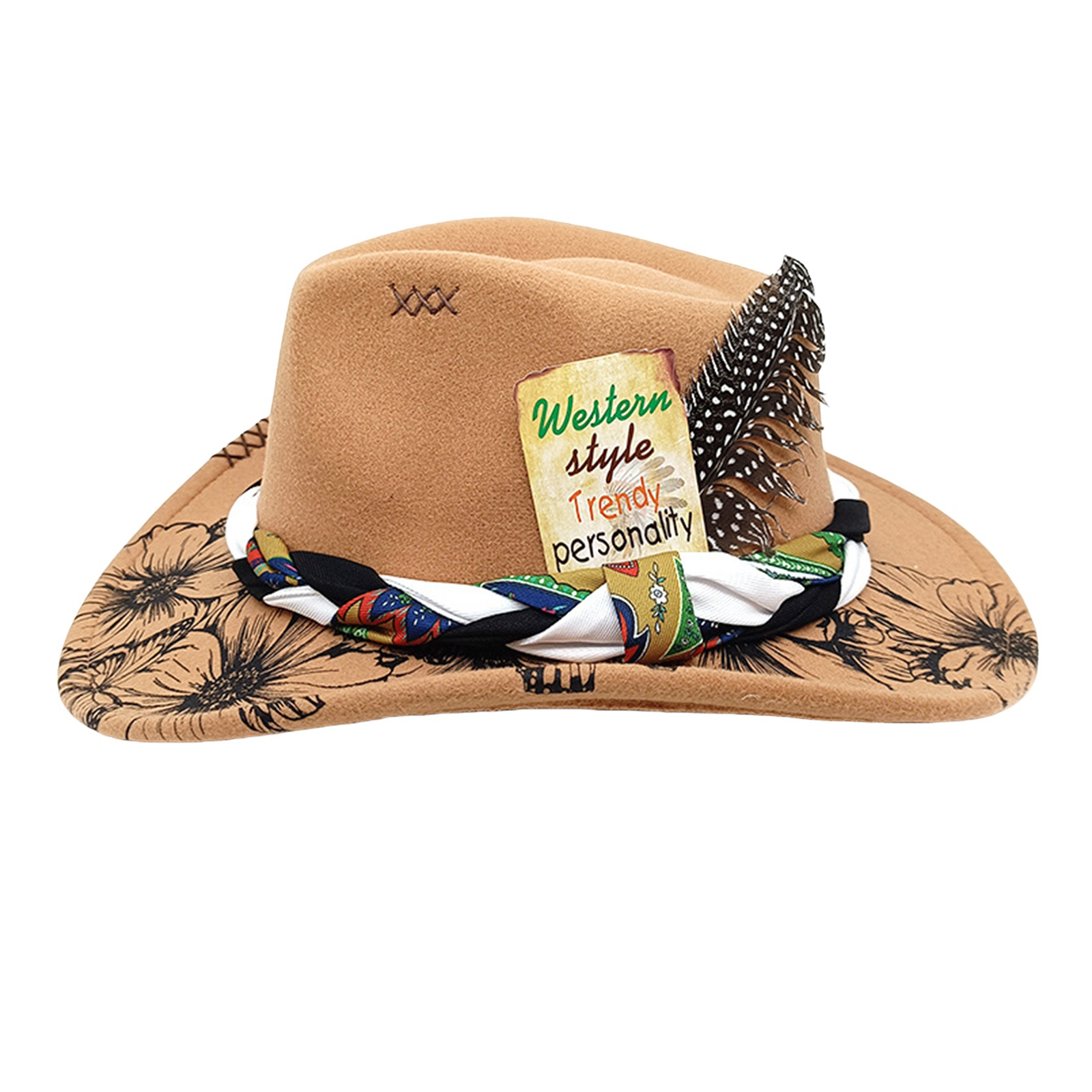 3.Classic design: the cowboy hat is decorated with fashionable printed ribbon, and the wide-brimmed