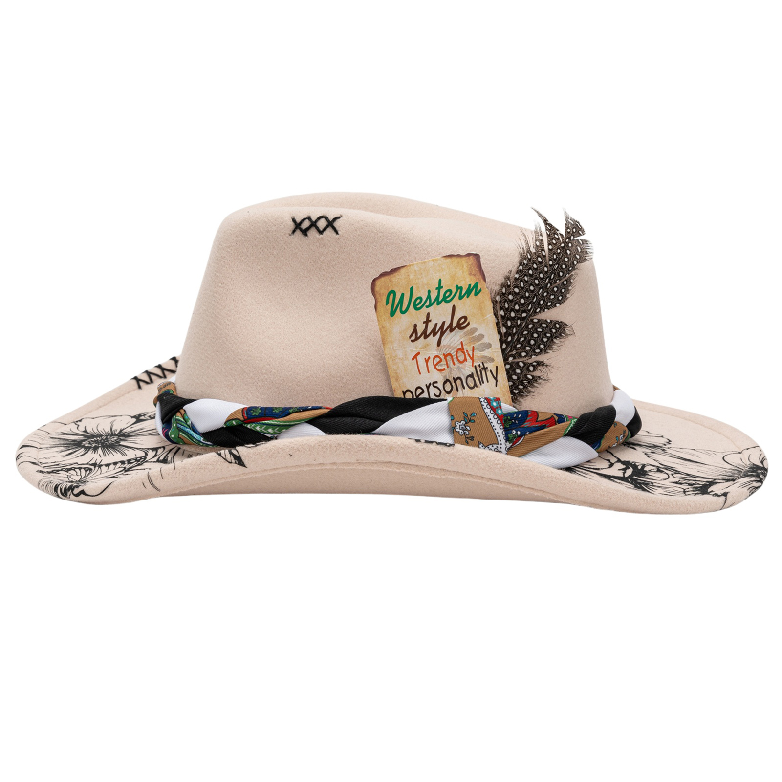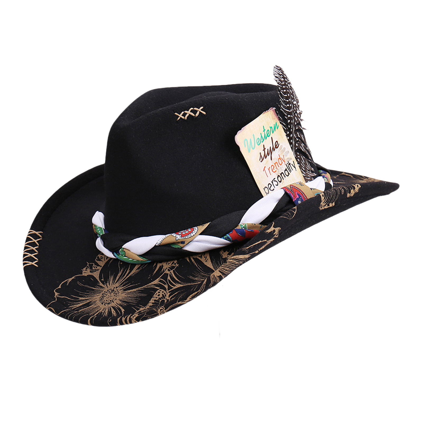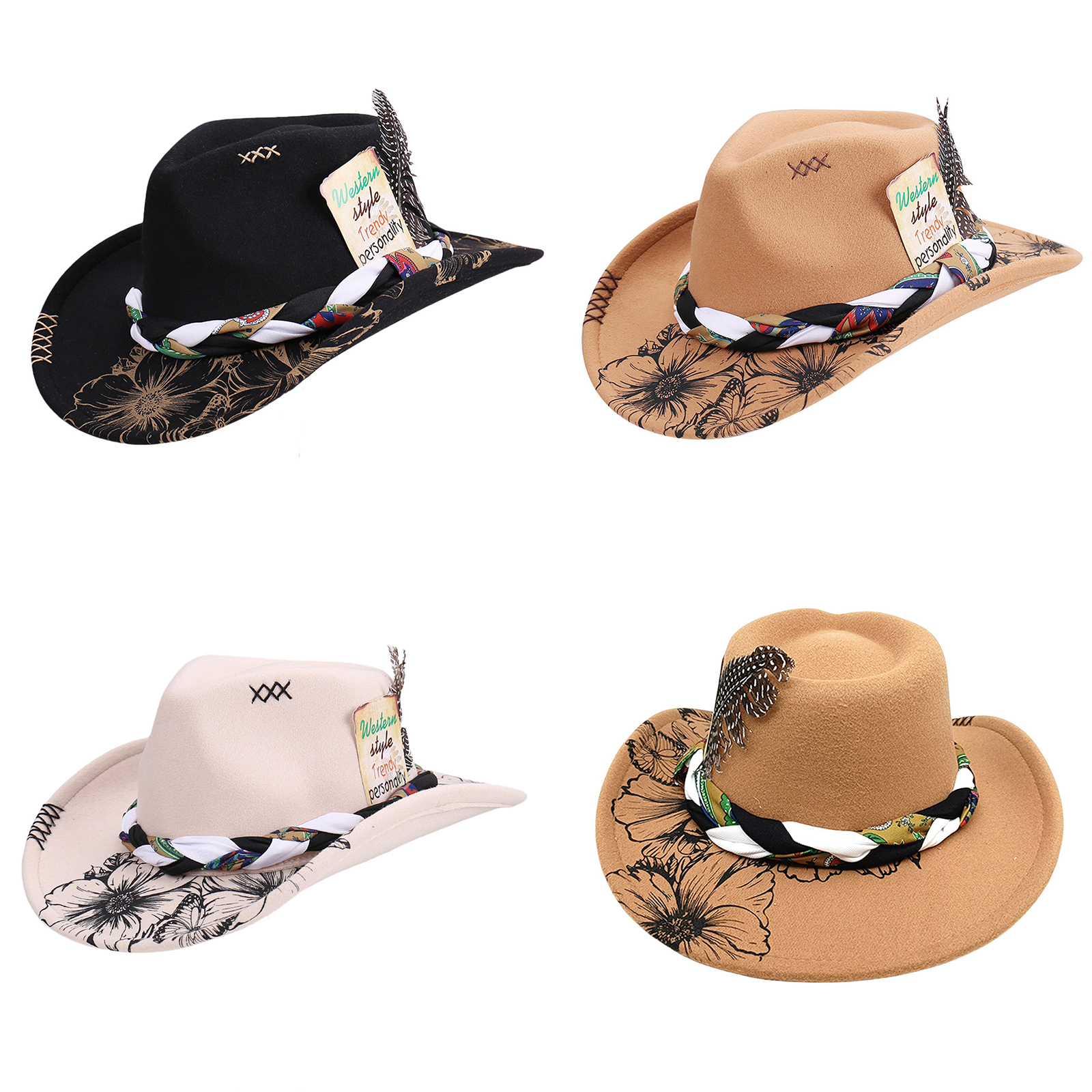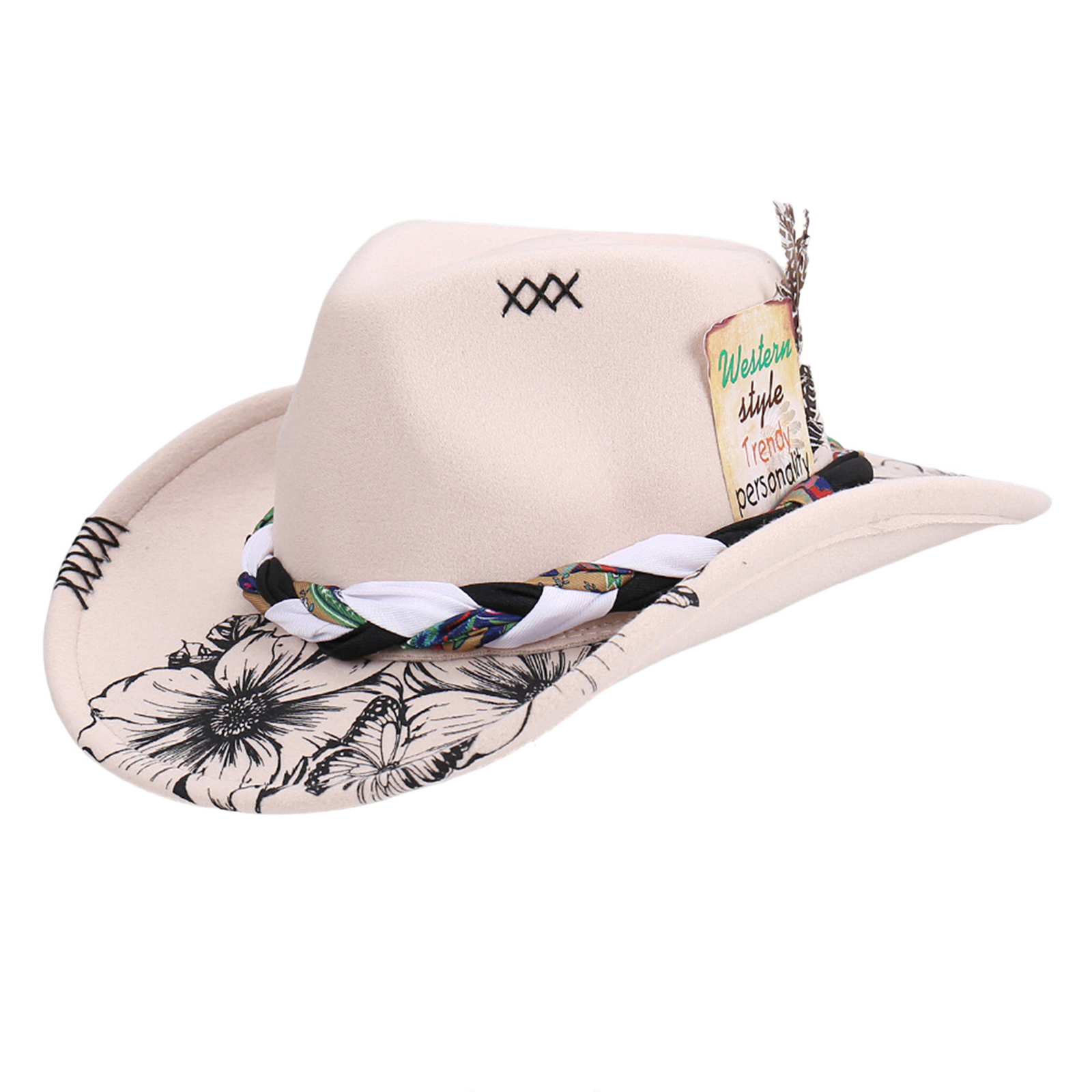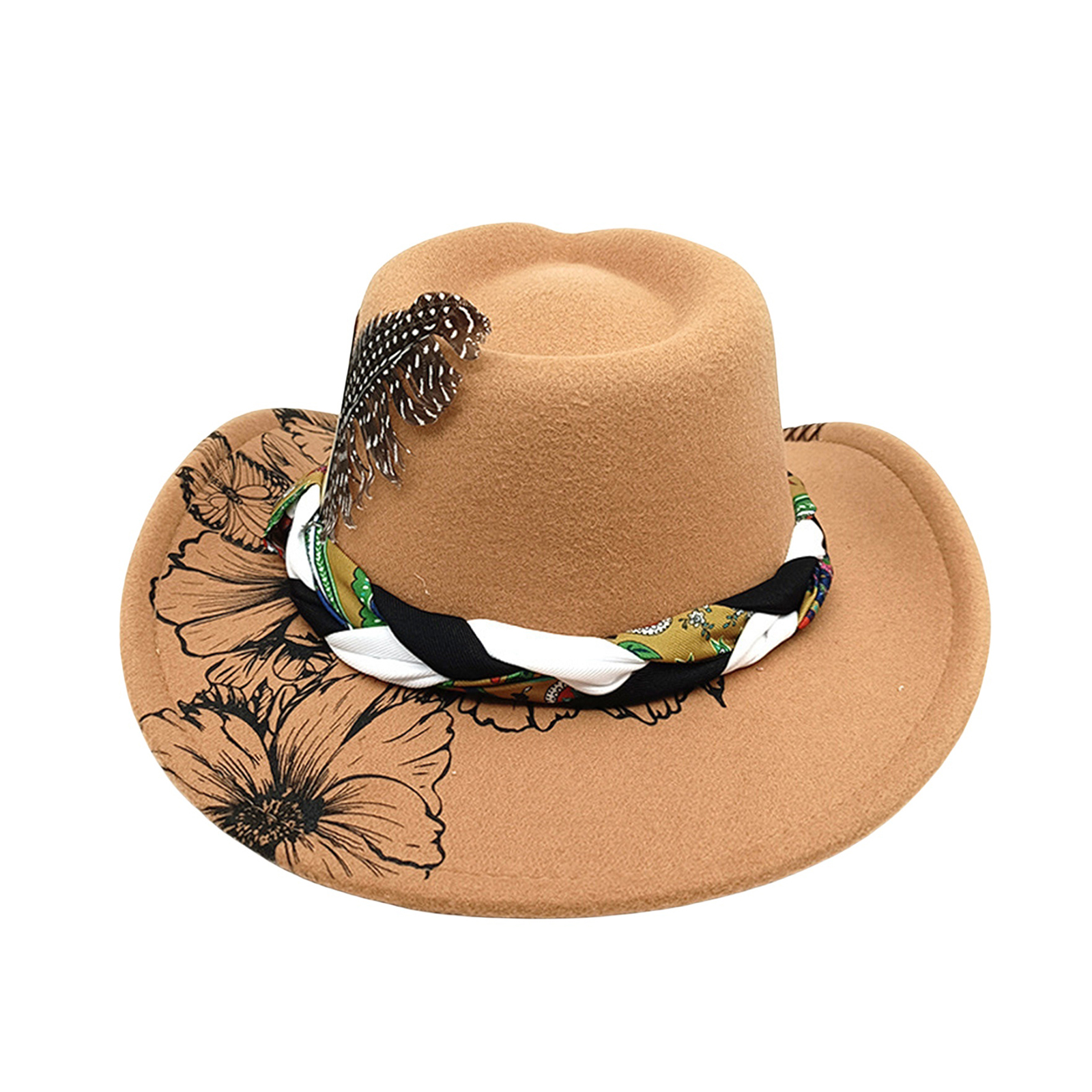 3.Classic design: the cowboy hat is decorated with fashionable printed ribbon, and the wide-brimmed