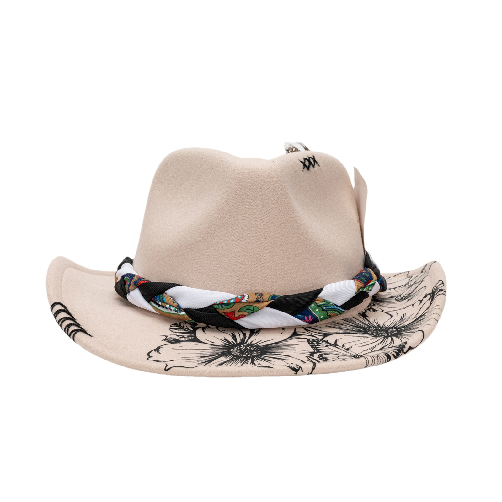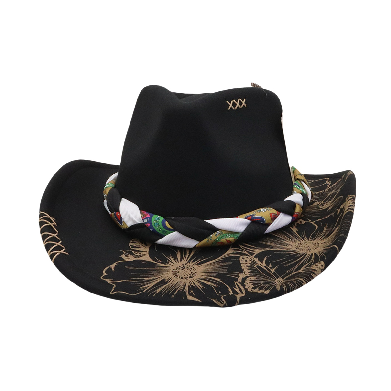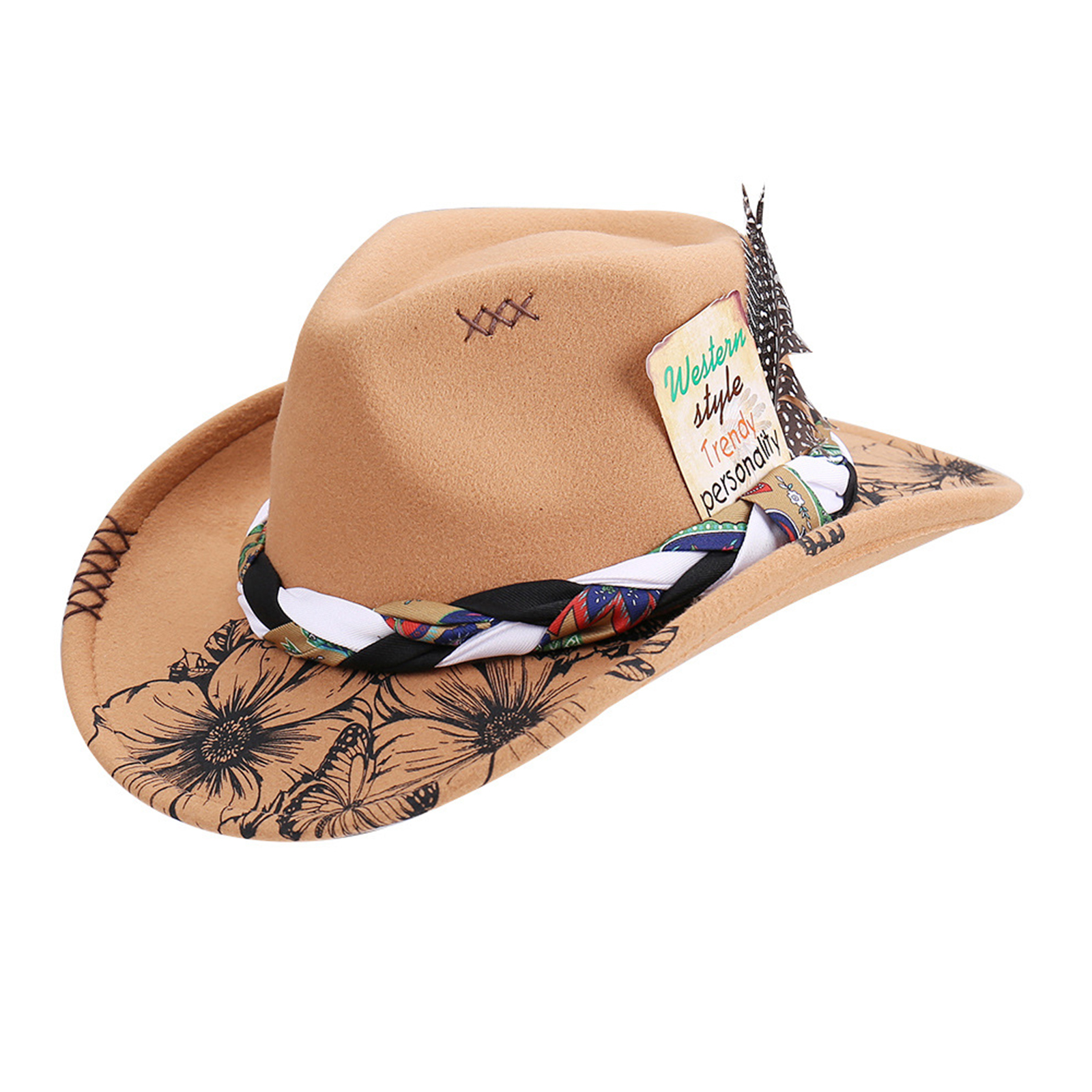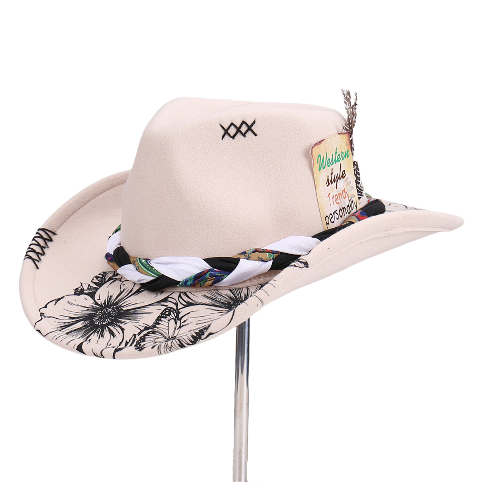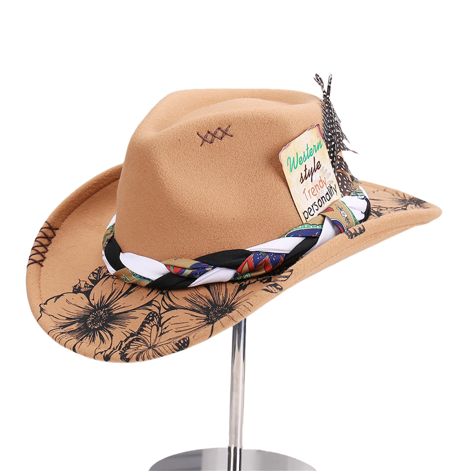 3.Classic design: the cowboy hat is decorated with fashionable printed ribbon, and the wide-brimmed
