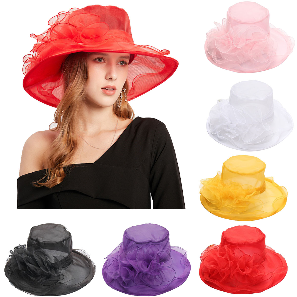 Women's Church Kentucky Organza Hat Wide Brim Tea Party Dress Wedding Derby Hats