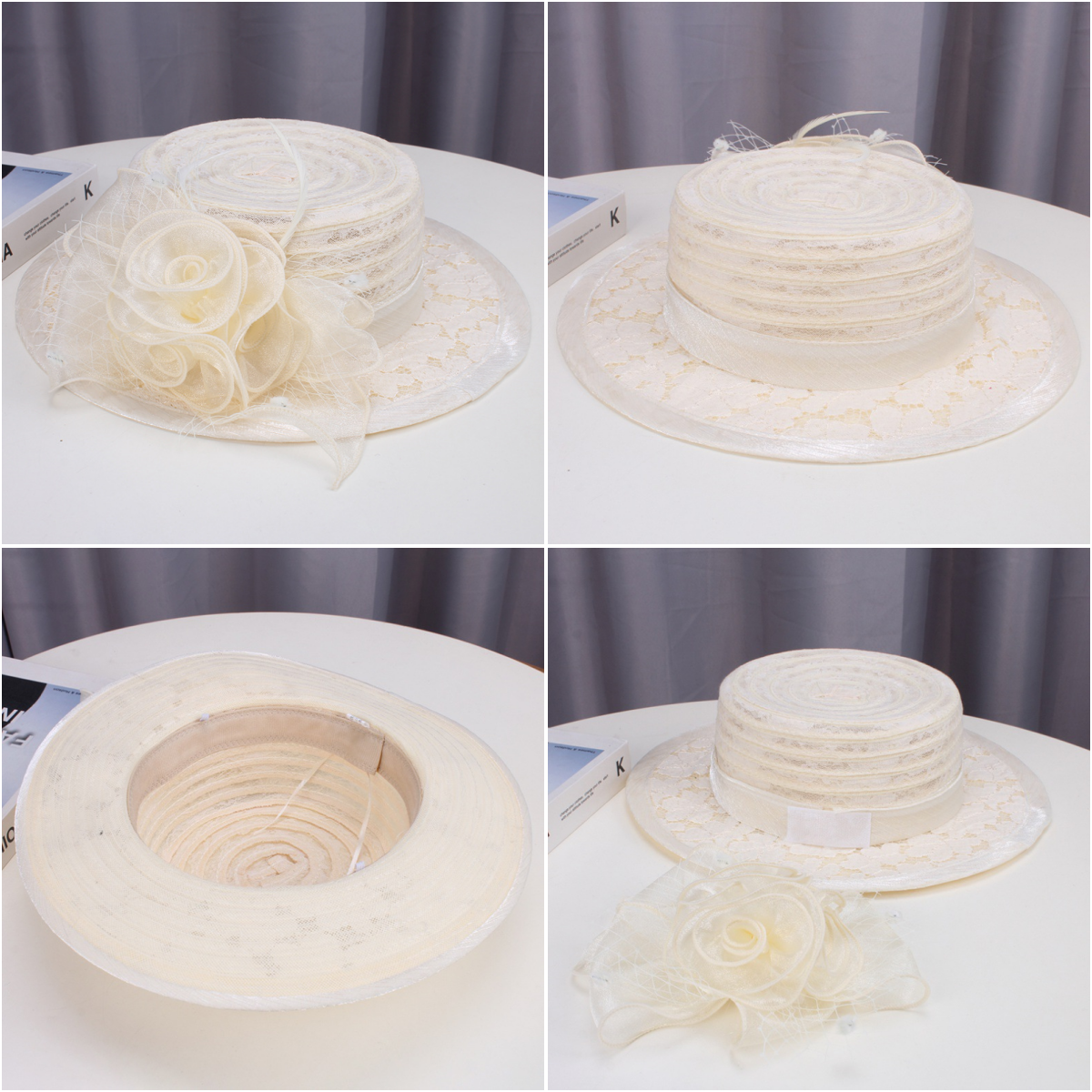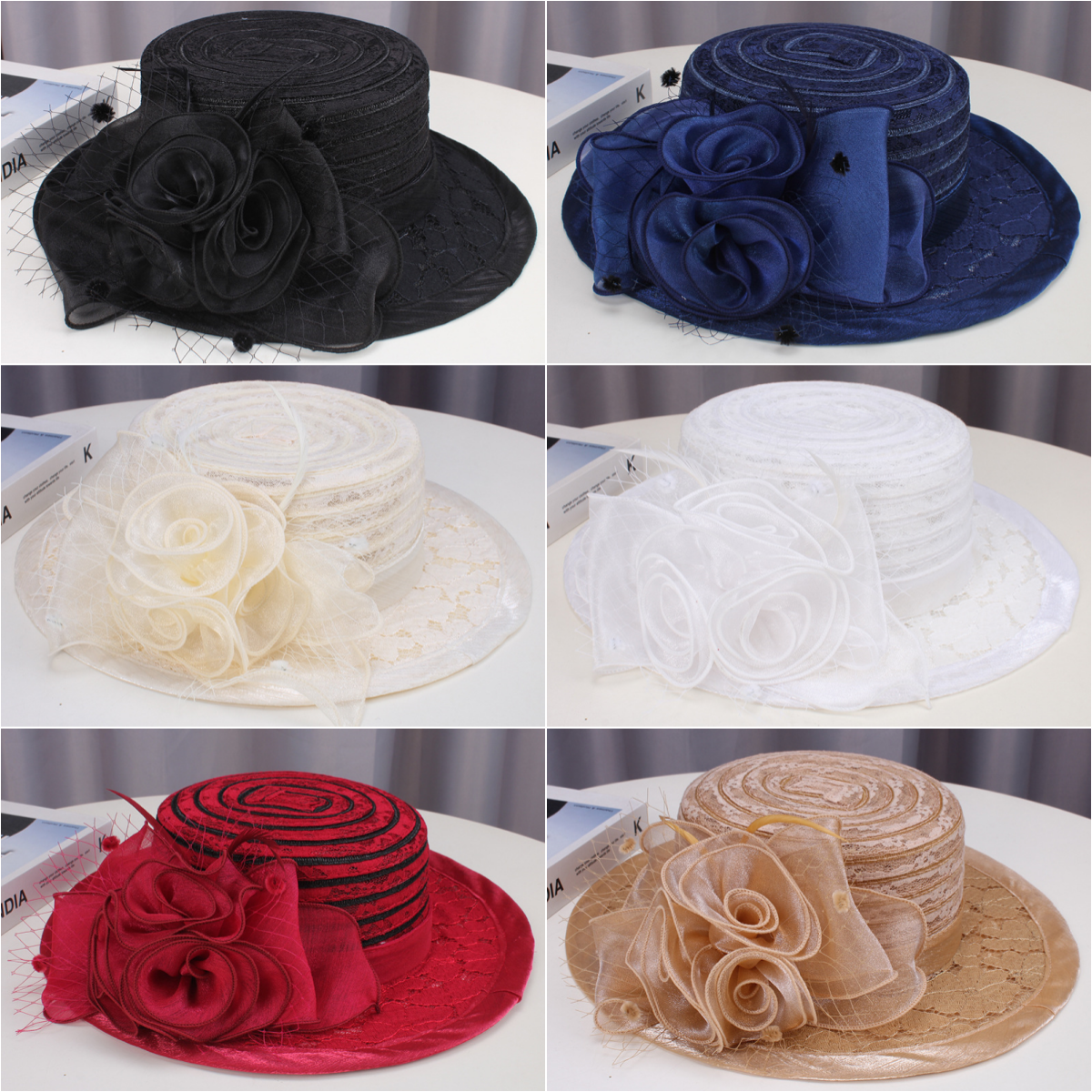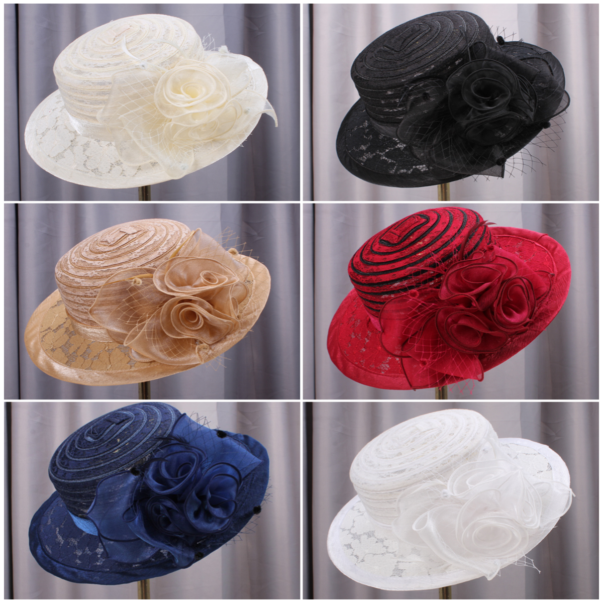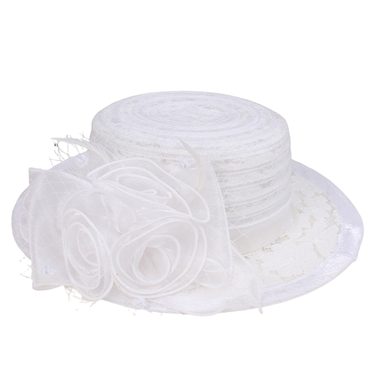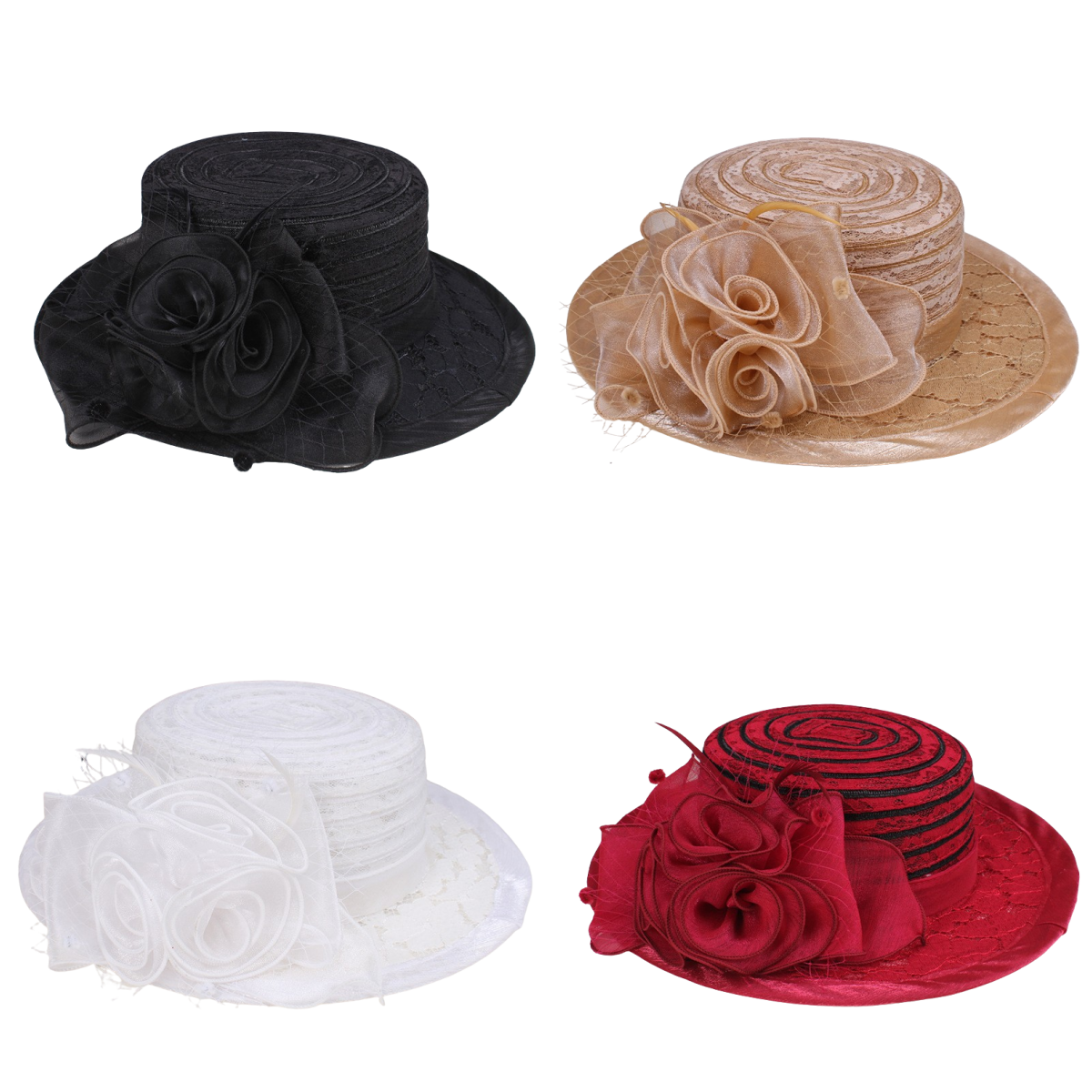 Women's Fascinator Hat Wide Brim Church Bridal Tea Party Wedding Hat Derby Cap