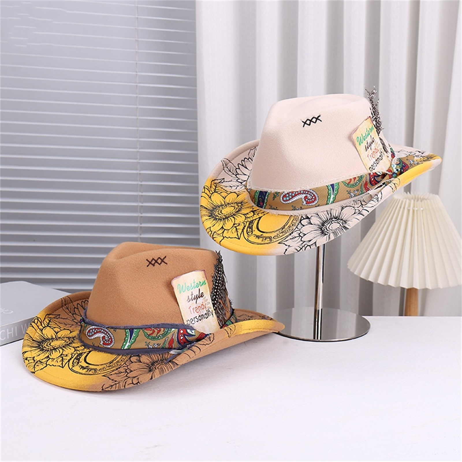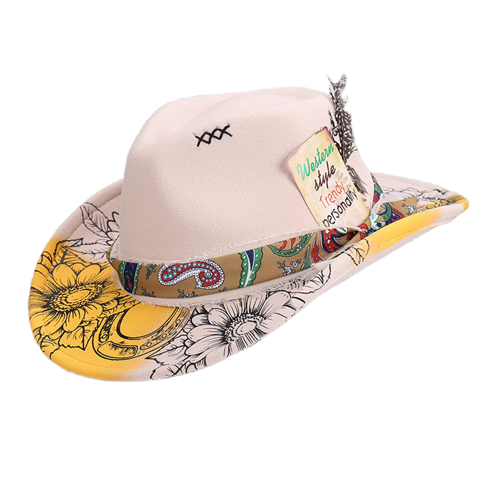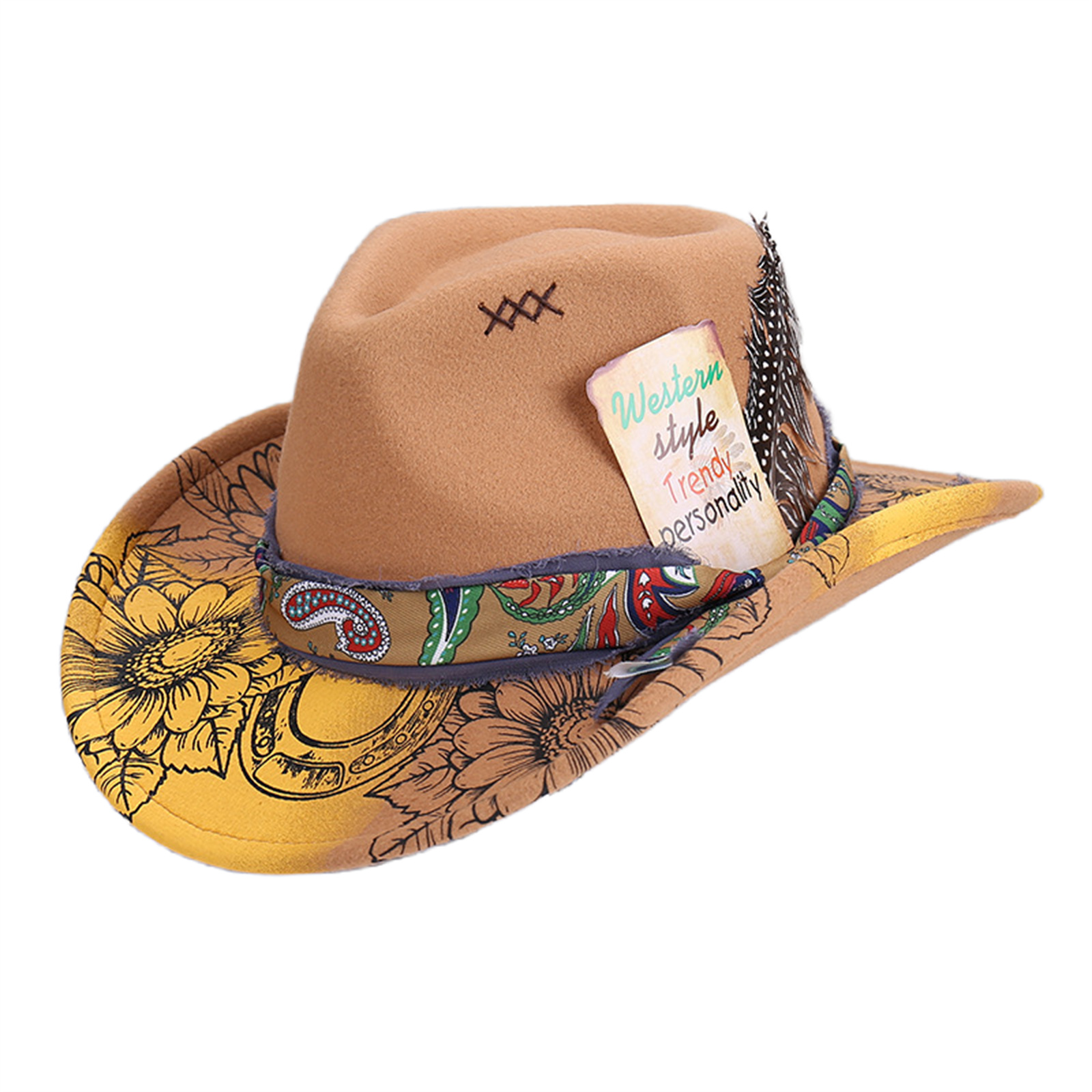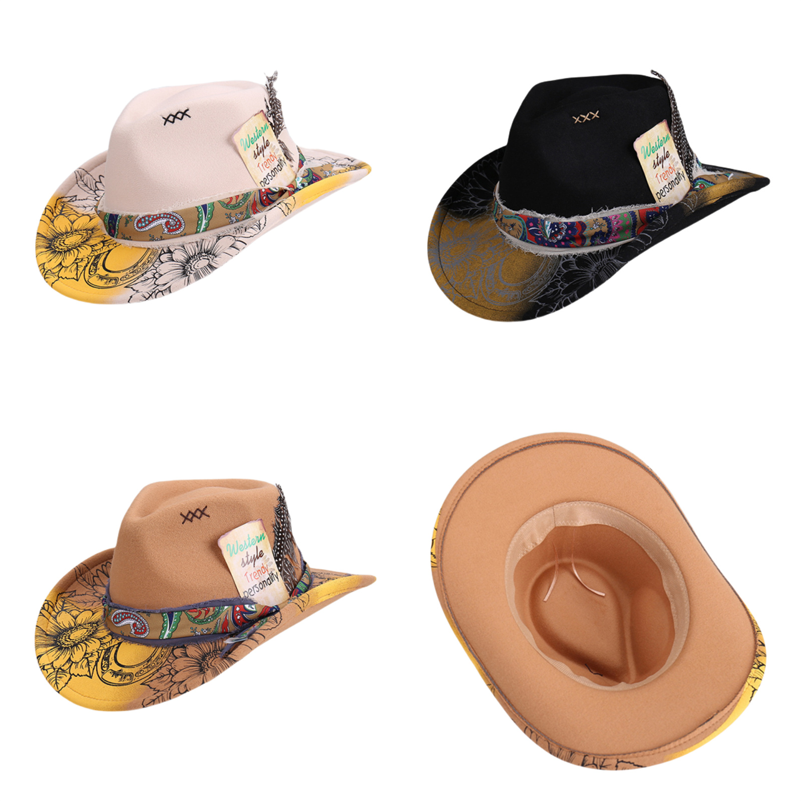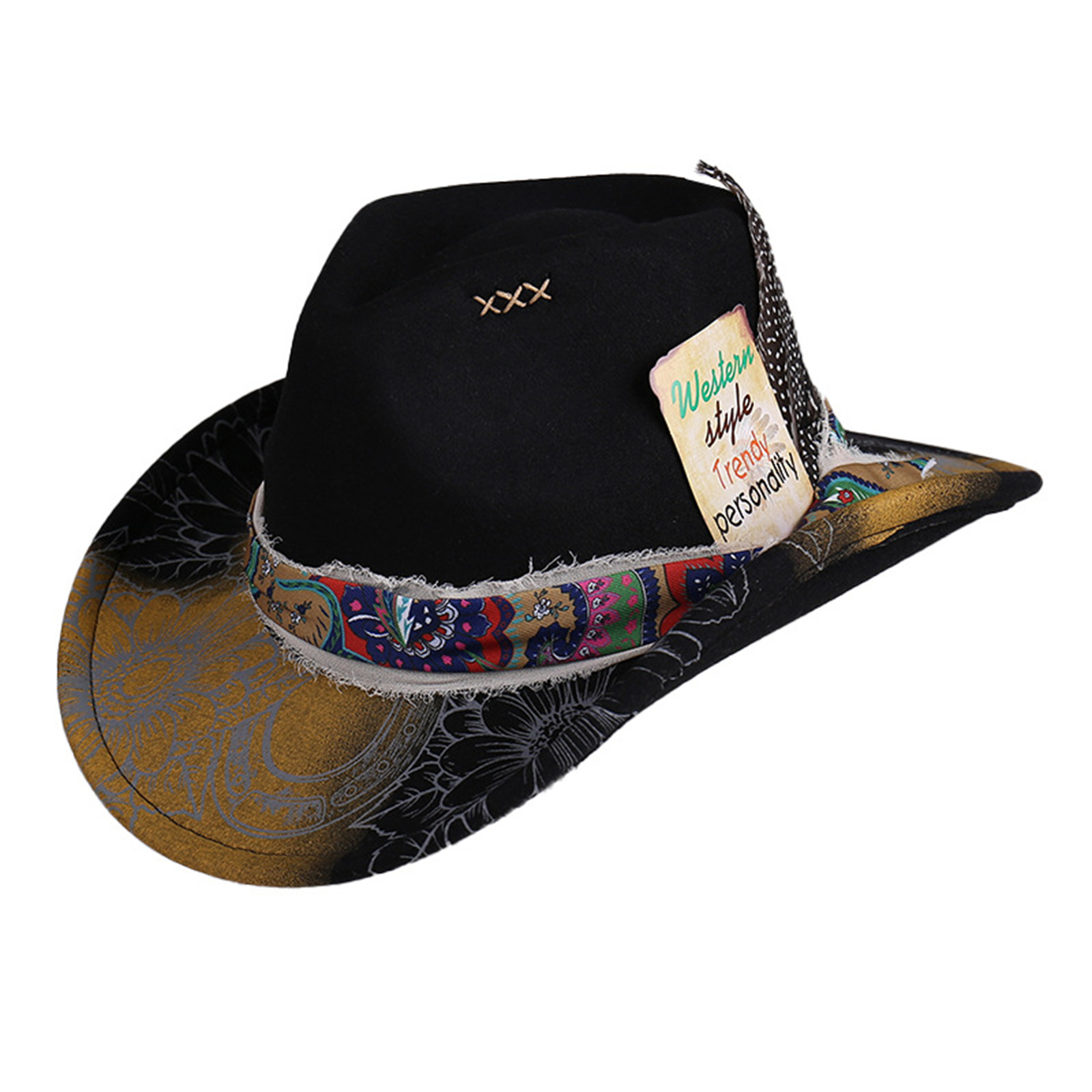 Retro Mens Women Ethnic Style Felt Hat Western Hat Classic Wide Brim Cowboy Hat