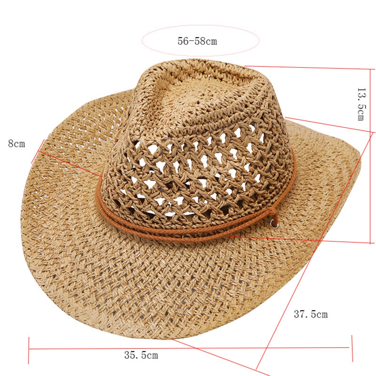 1. This light and airy straw hat is very suitable for warm summer days. Circulating air holes ensure adequate air circulation. The hat is 100% natural grass.