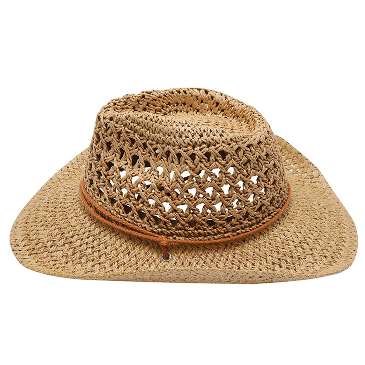 Western Men Women Straw Cowboy Cap Hat Wide Brim Breathable Hollowed Out Hat
