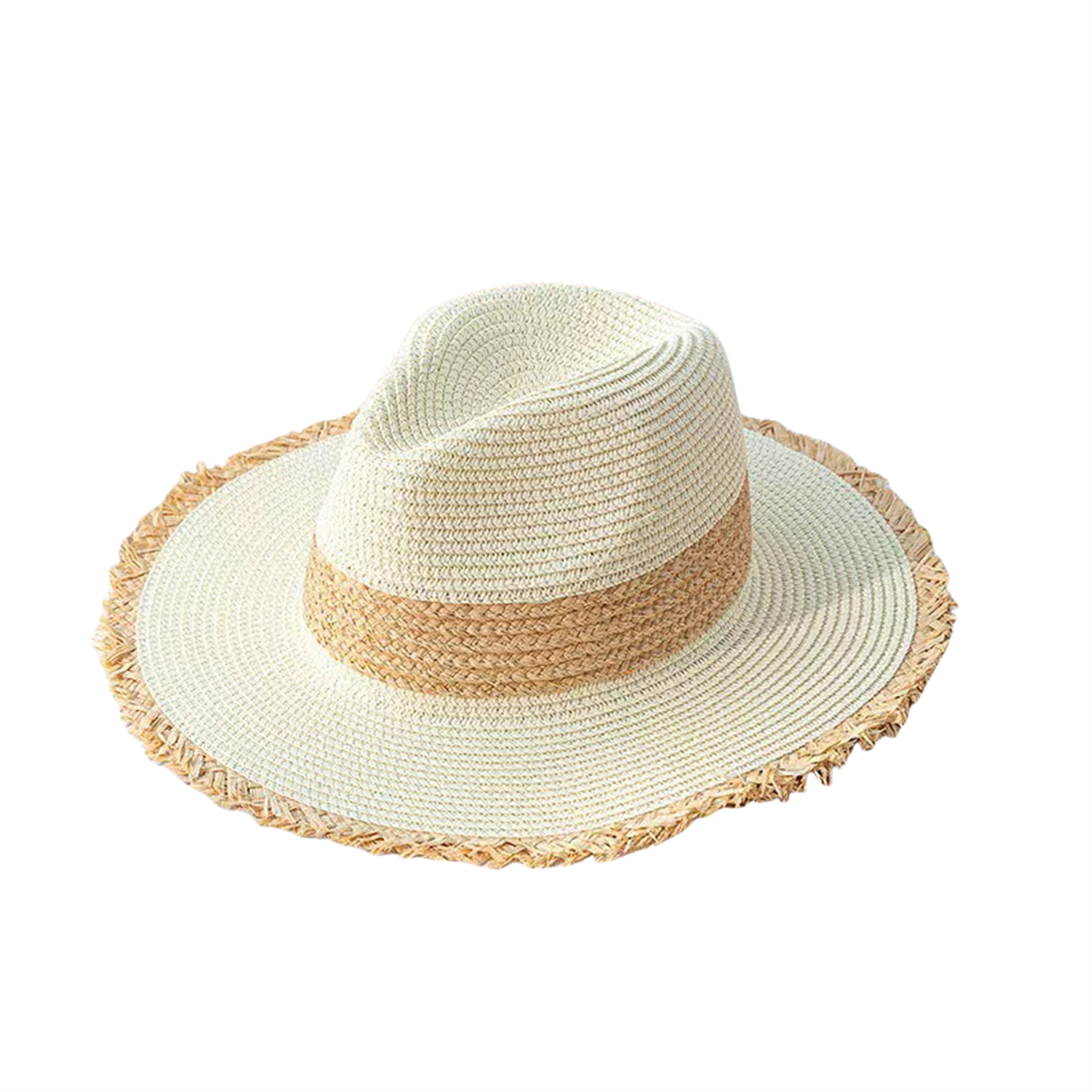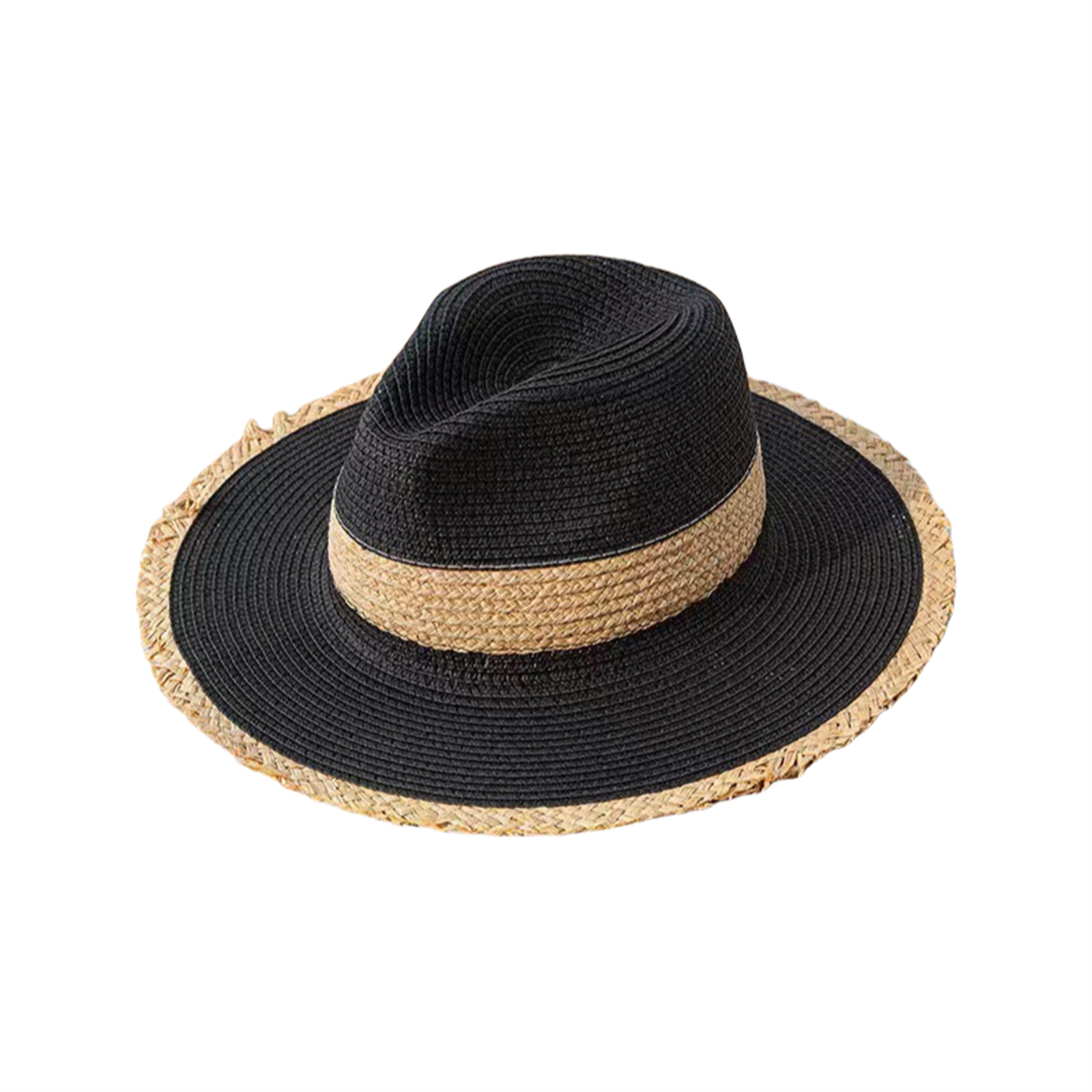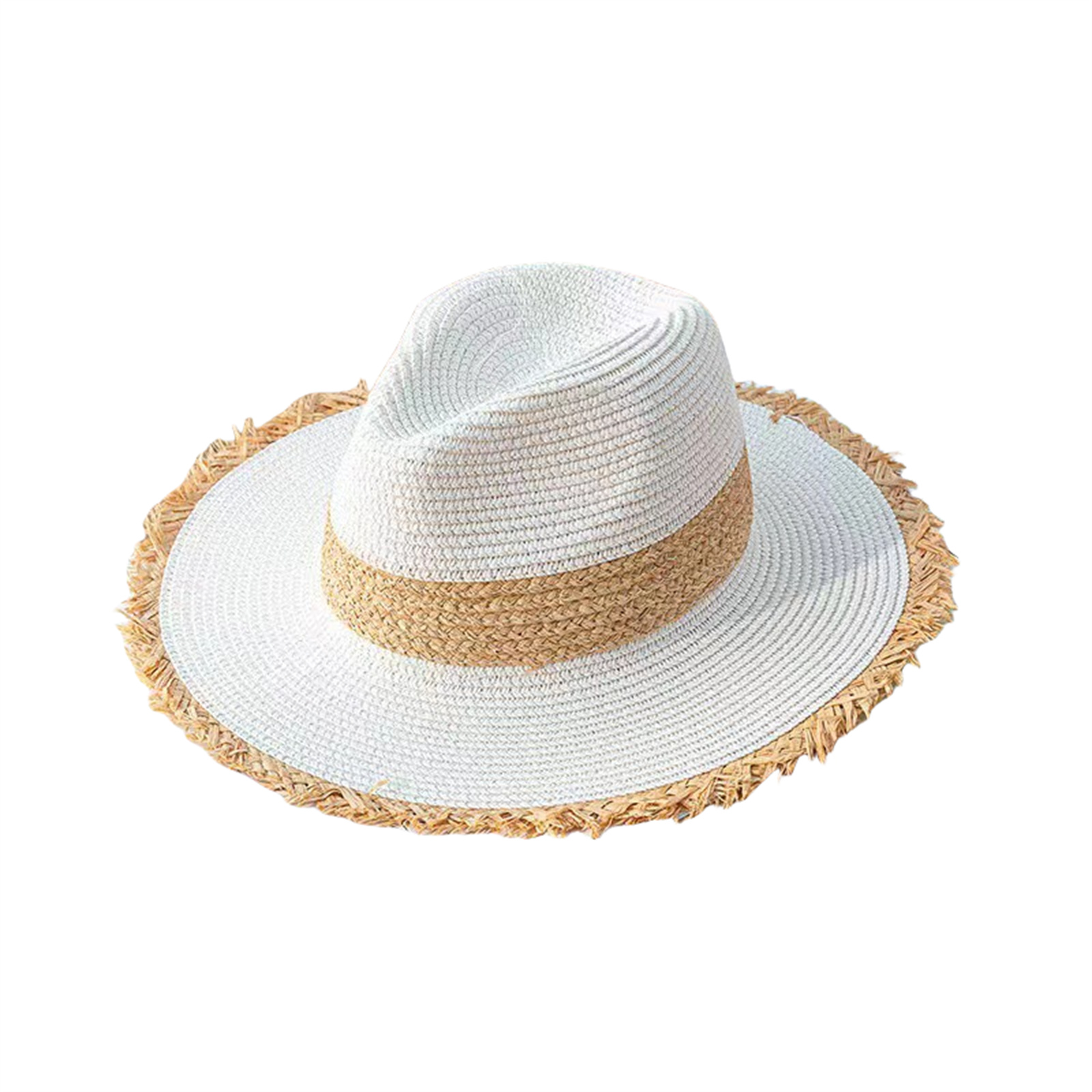 Womens Mens Frayed Panama Hat Straw Sun Hat Summer Wide Brim Beach Travel Hat