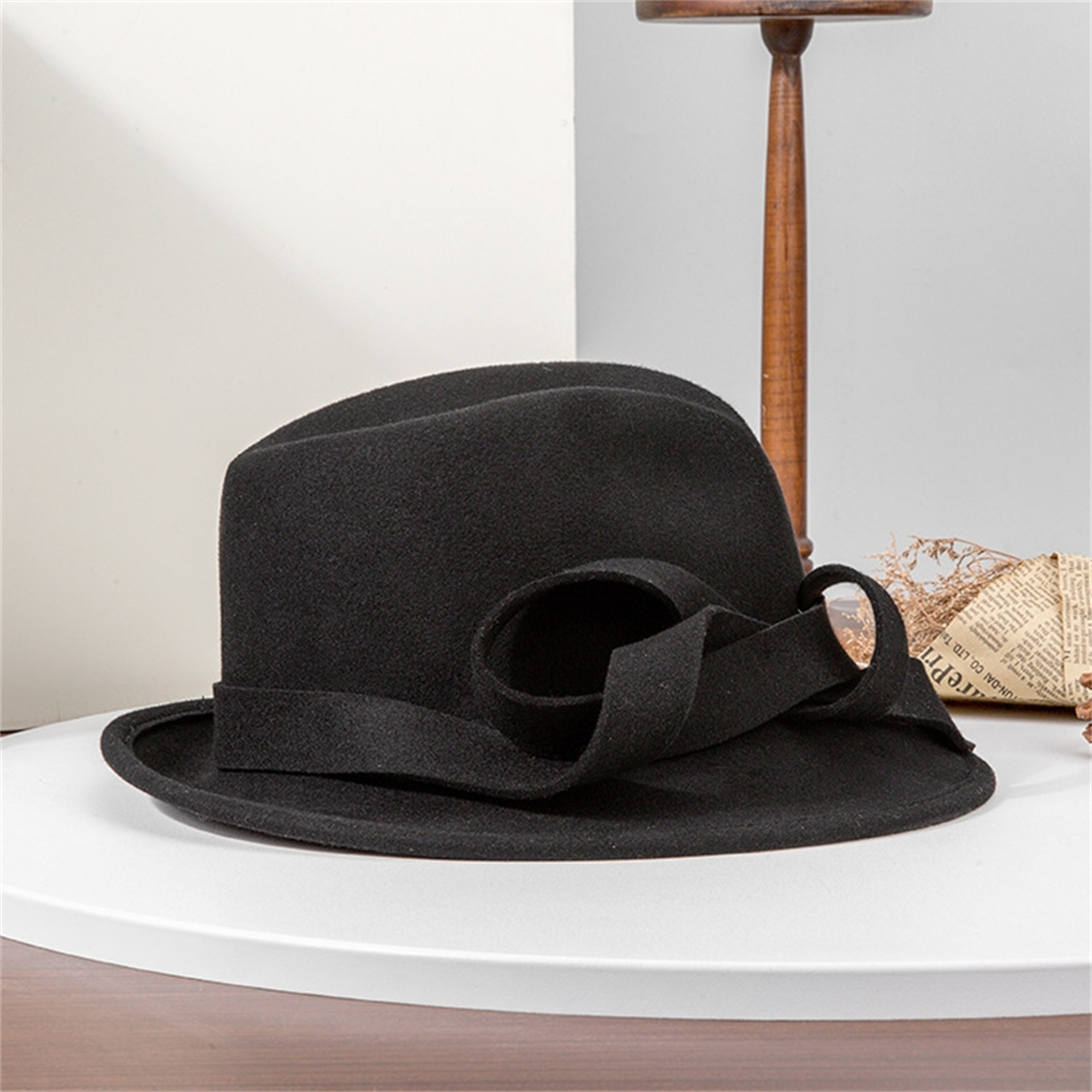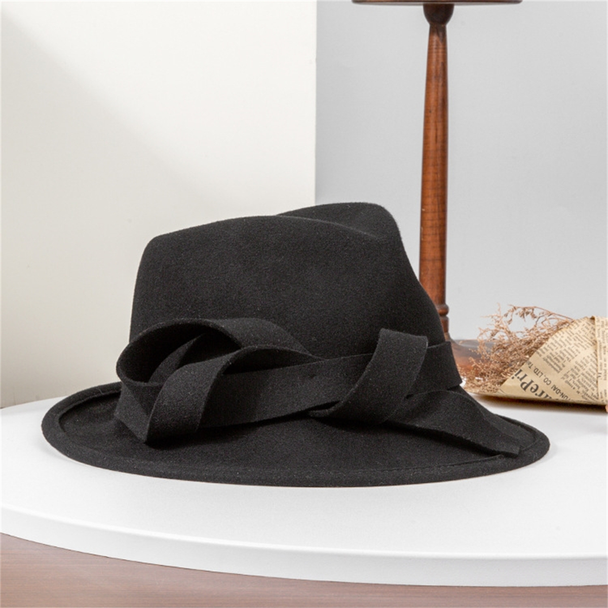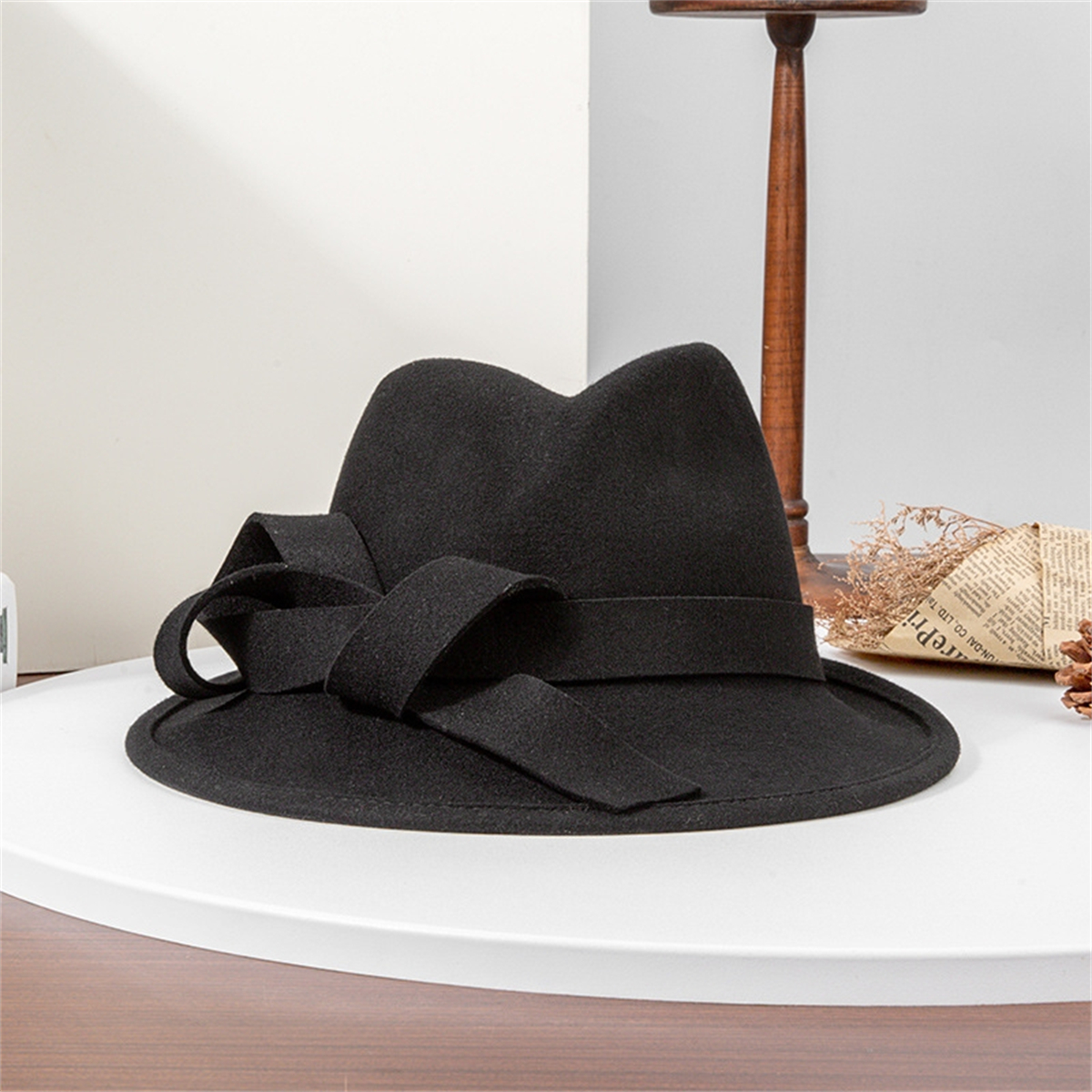 British Jazz Hat Women Wool Felt Fedora Hat Vintage Wide Brim with Band Hat