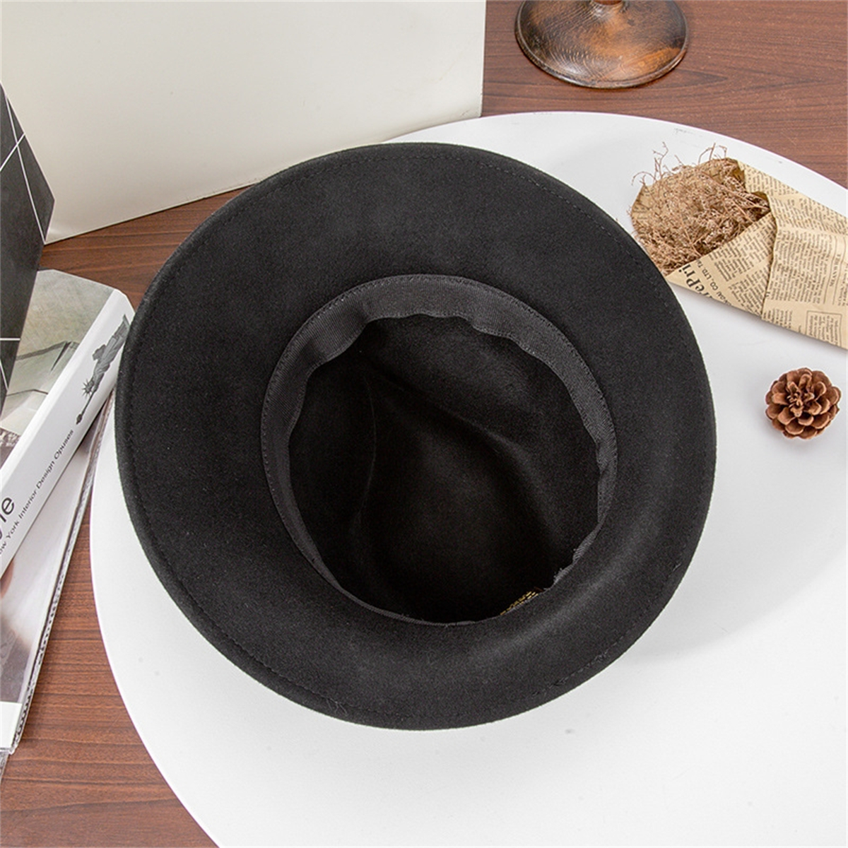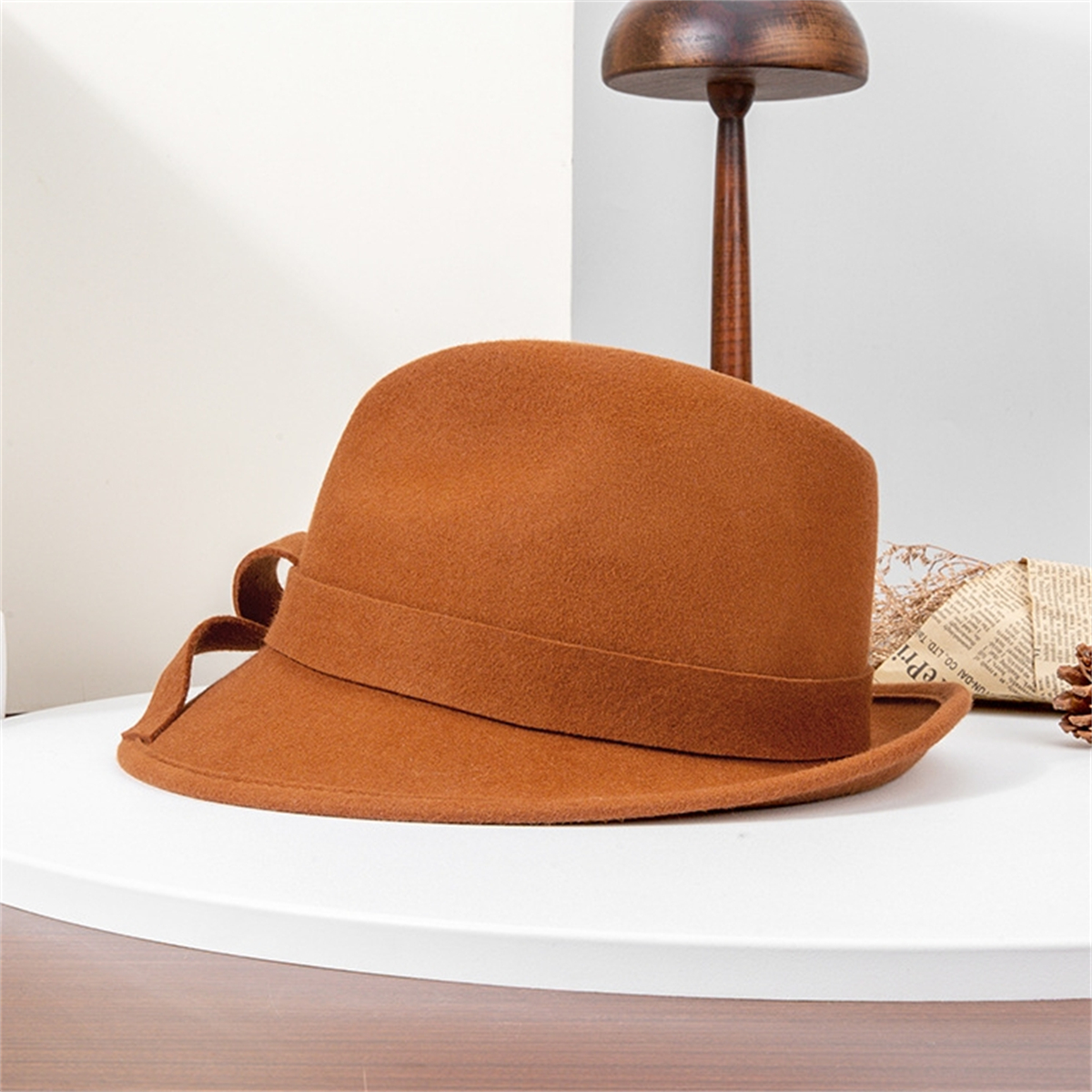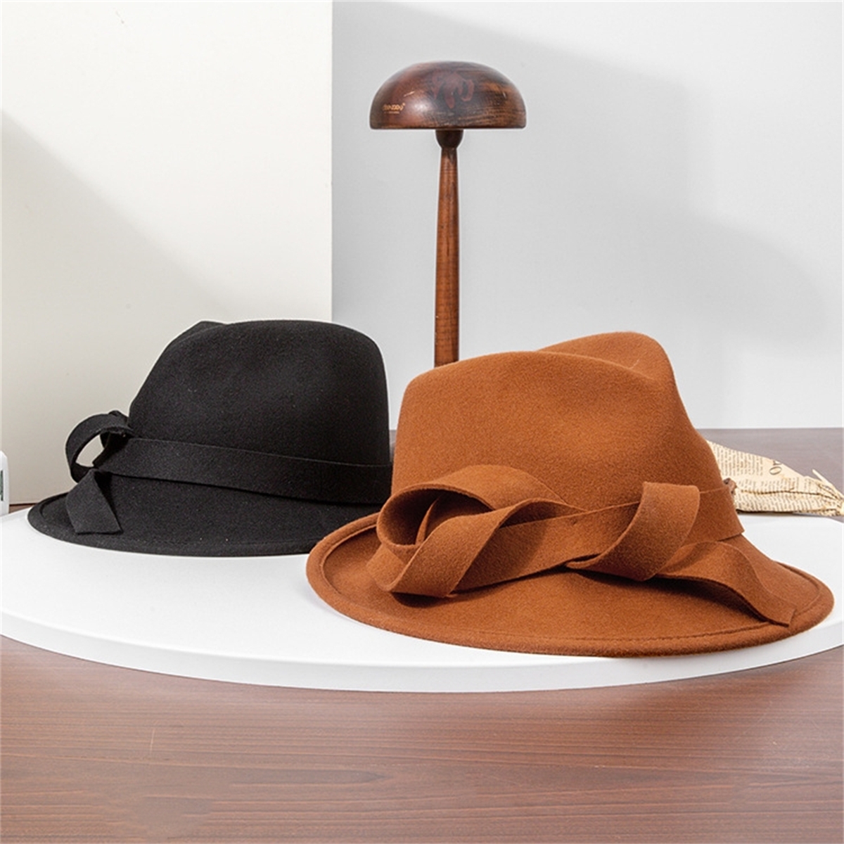 British Jazz Hat Women Wool Felt Fedora Hat Vintage Wide Brim with Band Hat