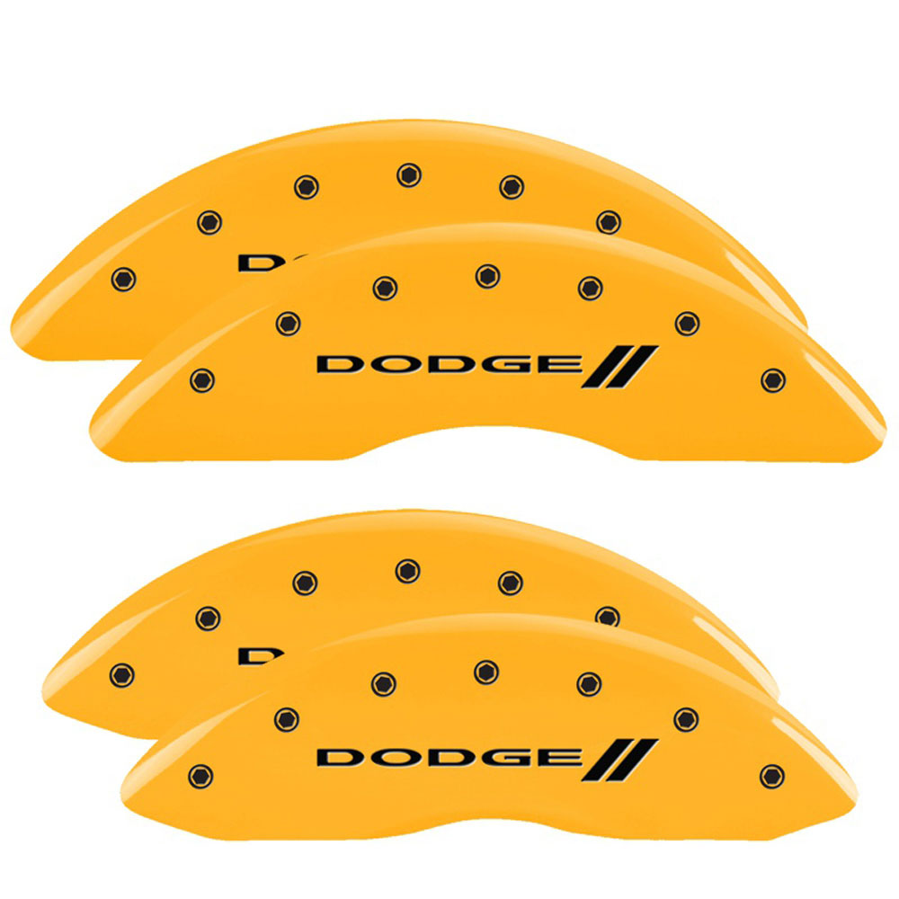 MGP Caliper Covers are a car accessory designed and manufactured specifically for your Dodge vehicle to cover up and hide those ugly brake calipers. These aluminum caliper covers are finished with a high-quality powder coat. These yellow caliper covers will enhance your wheel appearance and curbside appeal. MGP Brake Caliper Covers are tested for safe fitment and are licensed by major manufacturers.