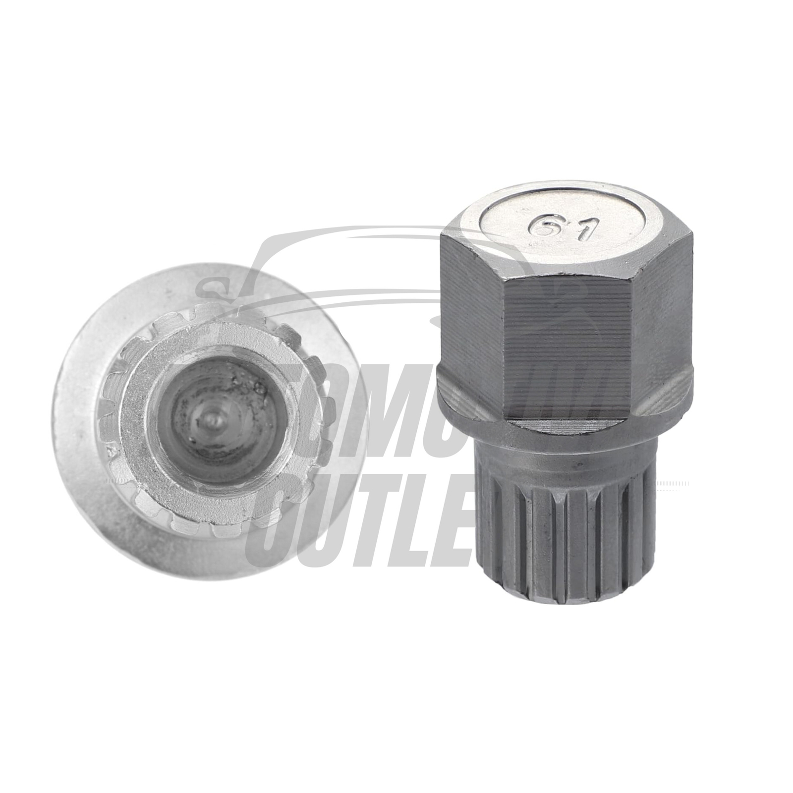 Wenn Sie Ihren Original-Radmutternschlüssel verloren oder beschädigt haben, können Sie mit diesem Ersatz-Spline-Steckschlüssel Ihre diebstahlsicheren Muttern sicher entfernen. Jede werkseitige Sicherungsmutter verfügt über ein einzigartiges Keilprofil, das durch einen Mustercode gekennzeichnet ist. Wählen Sie einen Schlüssel mit demselben Code und derselben Spline-Anzahl.