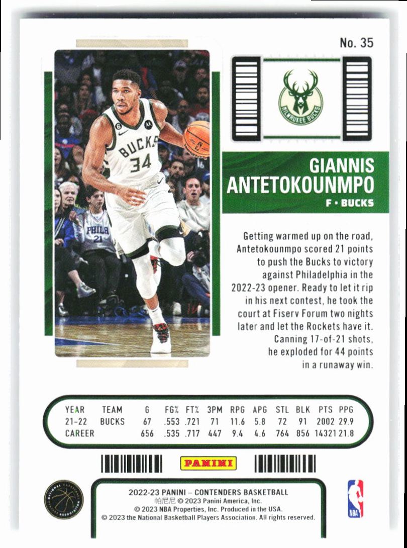 2022-23 Panini Contenders Season Ticket Giannis Antetokounmpo #35 Milwaukee