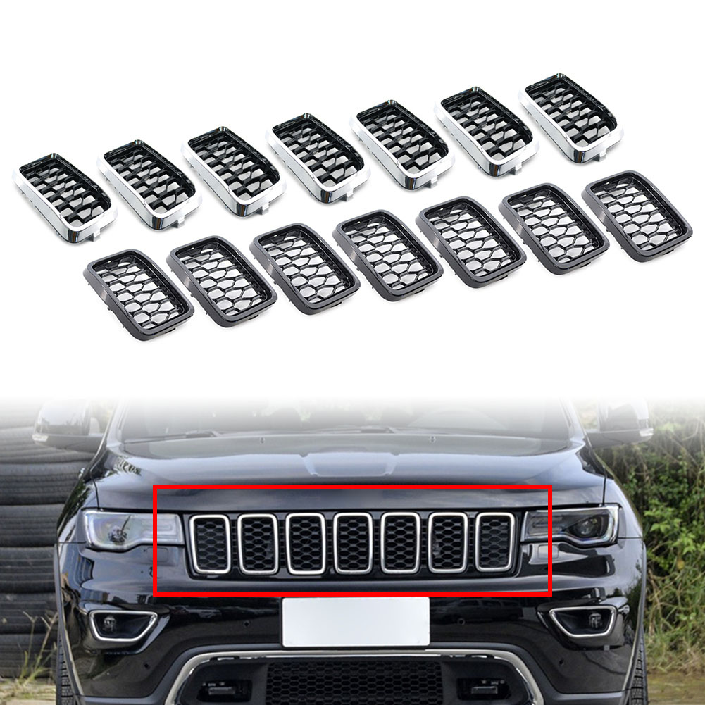 Frontgrill-Wabengittereinsatz-Abdeckungsverkleidung für Jeep Grand Cherokee 2017–2021 68317863AA Spezifikationen: Zustand: 100 % nagelneu Material: ABS-Kunststoff Farbe: Chrom, glänzendes Schwarz Ausstattungstyp: Direkter Ersatz Anbringung am Fahrzeug: Vorne Hersteller-Teilenummer: 68317863AA Ausstattung: Passend für Jeep Grand Cherokee 2017-2021 Passend für Jeep Grand Cherokee 2016 75th Anniversary Model Nicht passend für Jeep Grand Cherokee SRT8 & SRT & Trackhawk-Modell Nicht passend für Jeep Cherokee Bitte prüfen Sie vor dem Kauf, ob dieser Artikel auf Ihr Auto passt.< /span> Eigenschaften: 1. Schöner, langlebiger, trendiger Look. Dekorieren Sie Ihr Auto mit charmantem Luxus lebendig. 2. Einfachere Installation. Machen Sie sich keine Sorgen, dass die Grilleinsätze herunterfallen, wenn Sie Ihr Auto fahren oder waschen. 3. Hergestellt aus hochwertigem ABS-Material für Langlebigkeit und ultraleichtes Gewicht, beständig gegen UV-Strahlung, Wasser, Schmutz, Fett, Salz, milde Säure und Öl. 4. Dieser Gittereinsatz schützt den Kondensator oder Kühler hinter dem Gitter vor großen Steinen oder Felsen. 5. Es ist so konzipiert, dass Luft durch den Motorraum strömen kann, um den Motor des Fahrzeugs zu kühlen und eine Überhitzung des Fahrzeugs zu verhindern. 6. Sie müssen Ihre ursprünglichen/alten Kühlergrilleinsätze entfernen und dann diese neuen Kühlergrilleinsätze anbringen lassen. Lieferumfang: 7 Teile/Set Hinweise: 1. Keine Installationsanleitung enthalten, professionelle Installation wird dringend empfohlen. 2. Die Farbe kann aufgrund der Farbeinstellung jedes einzelnen Monitors leicht variieren. 3. Beachten Sie die Installationsrichtung und -reihenfolge.