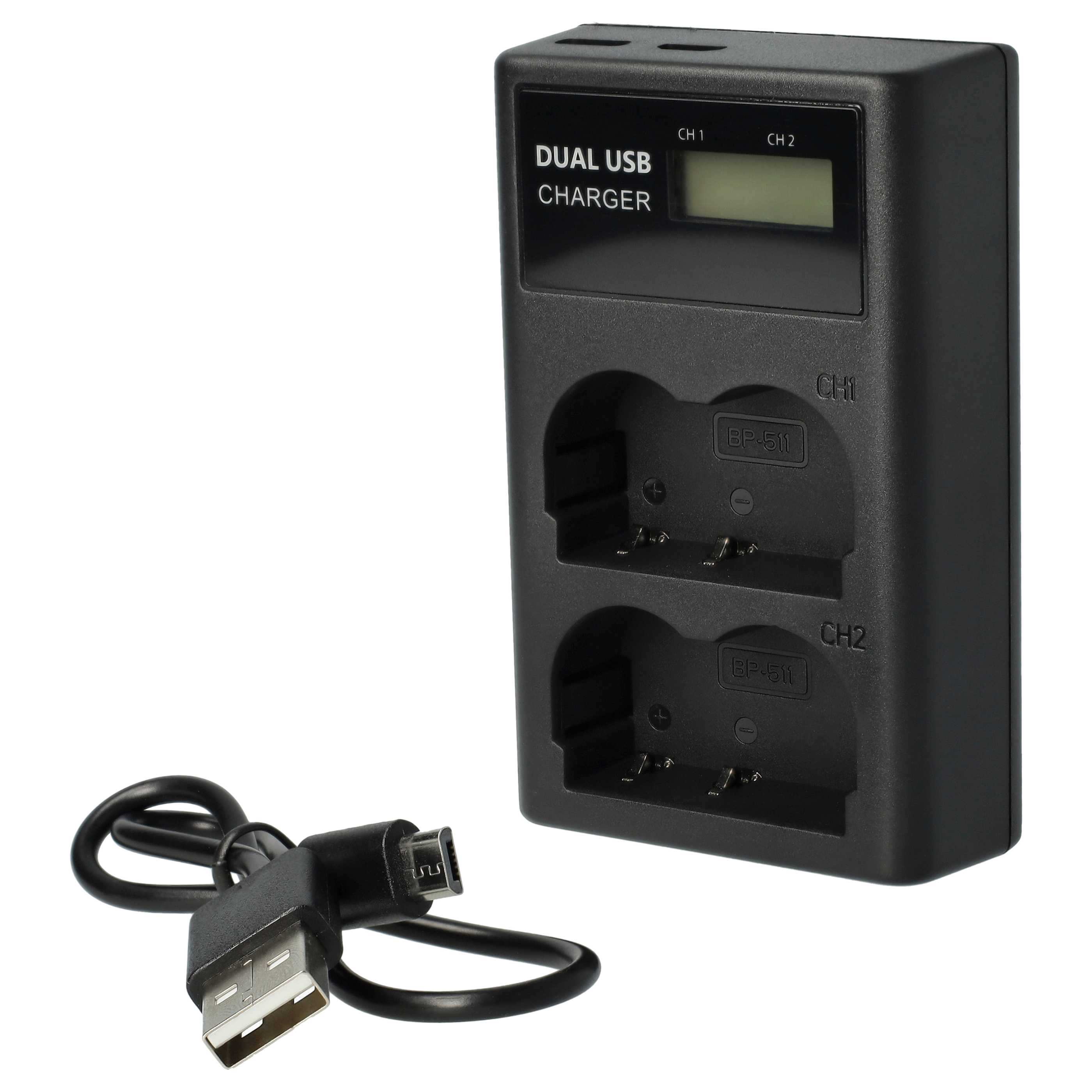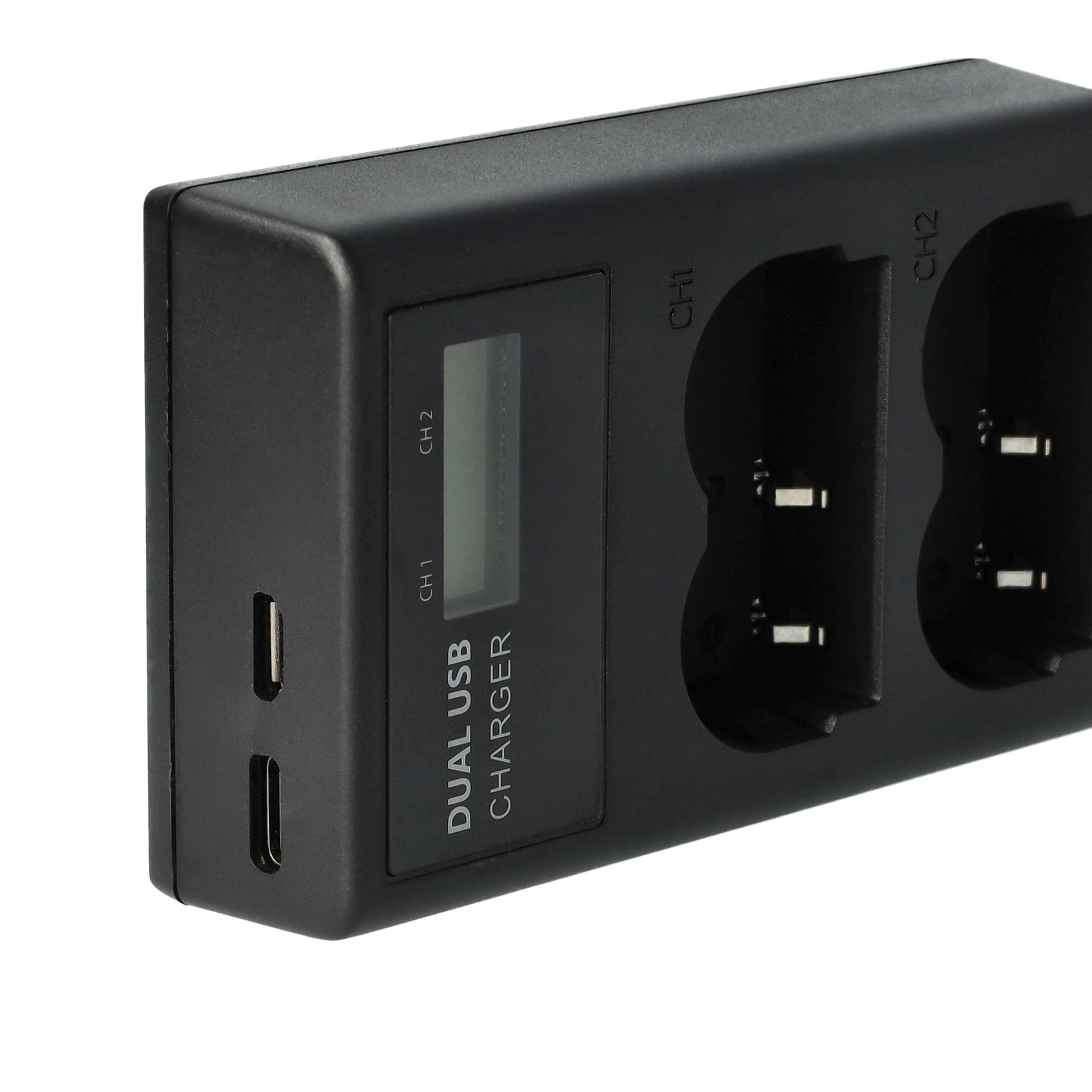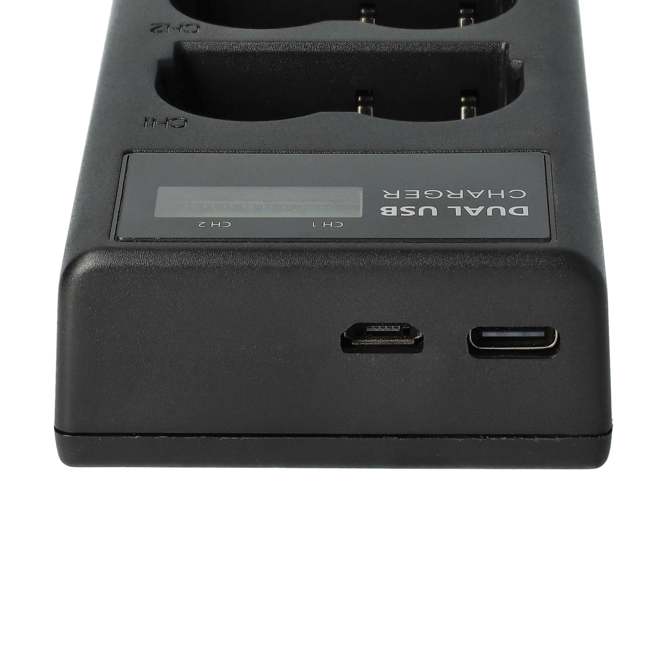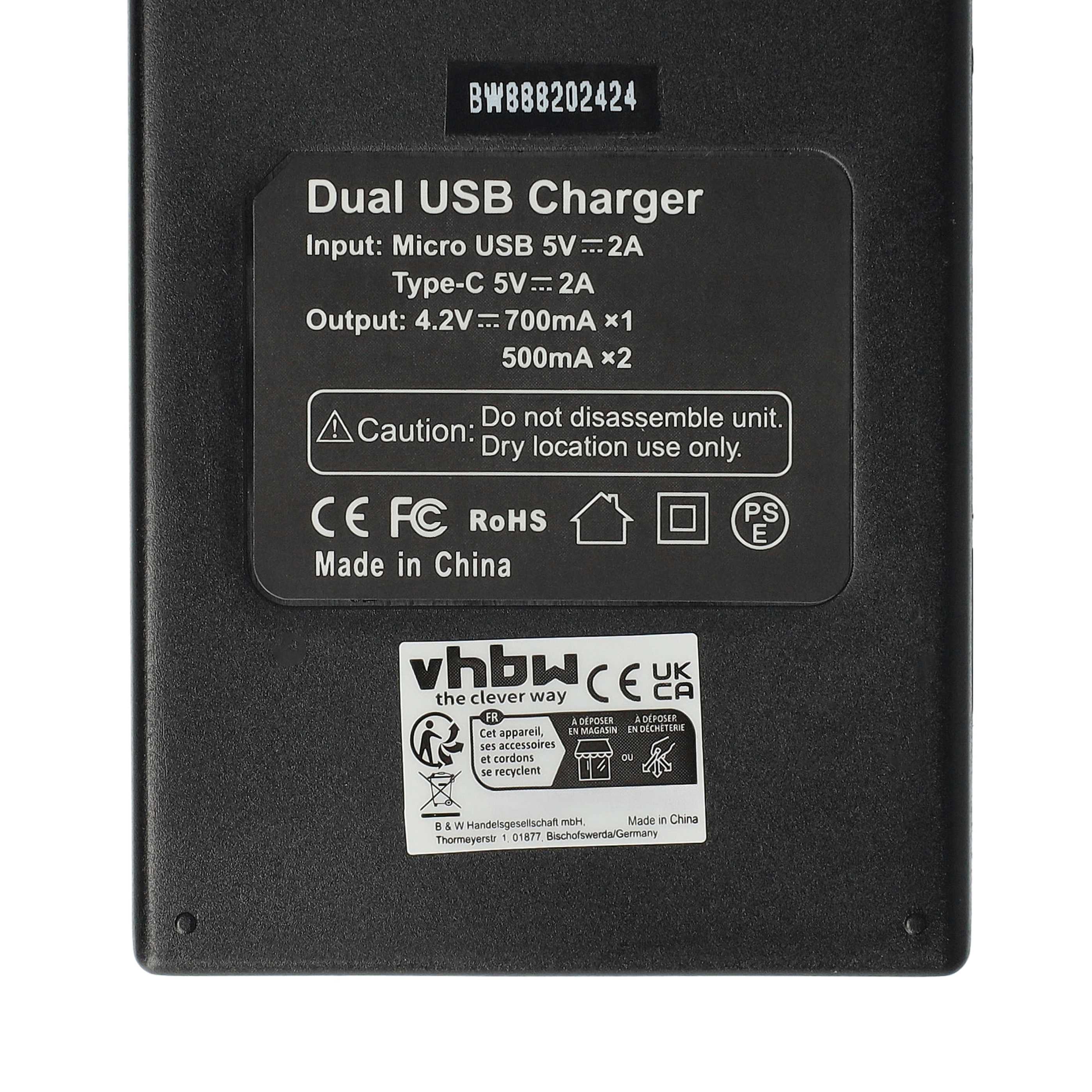 vhbw Chargeur double Micro-USB + USB-C pour Canon MV650i, MV730i, MV700i, MV700 appareil photo, caméscope, DSLR; inclus câble de charge USB vers Micro-USB vers micro-USB