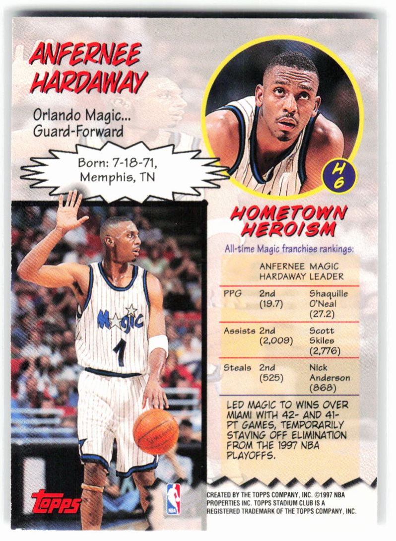 1997-98 Topps Stadium Club Hardcourt Heroics Anfernee Hardaway #H6 Orlando Magic