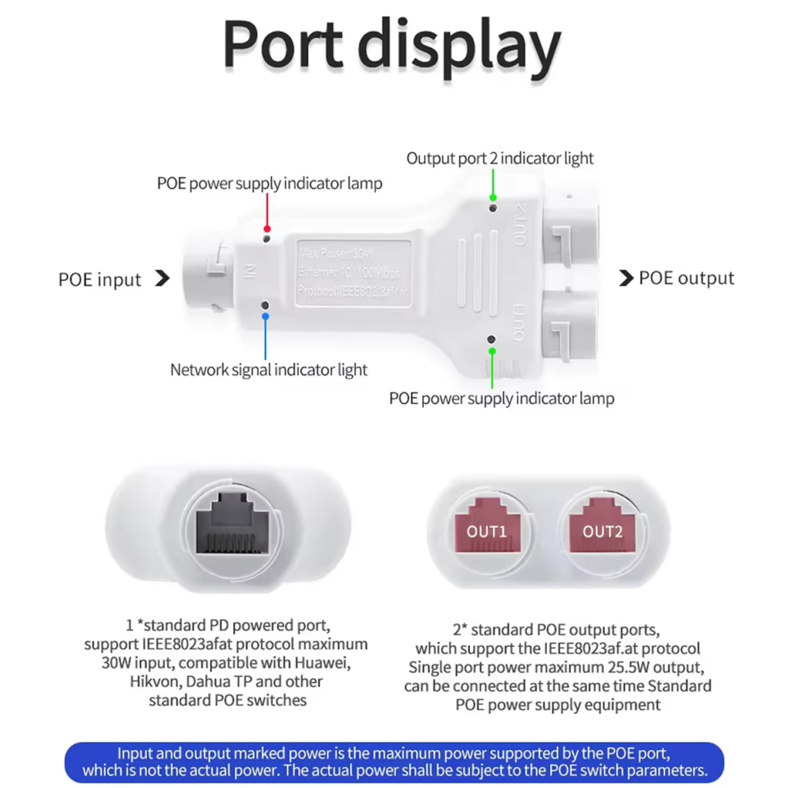 1. POE Injector Adapter, One POE Input Port And Two POE Output Port, Running One Cable To Connect To 2 POE Ip Devices.