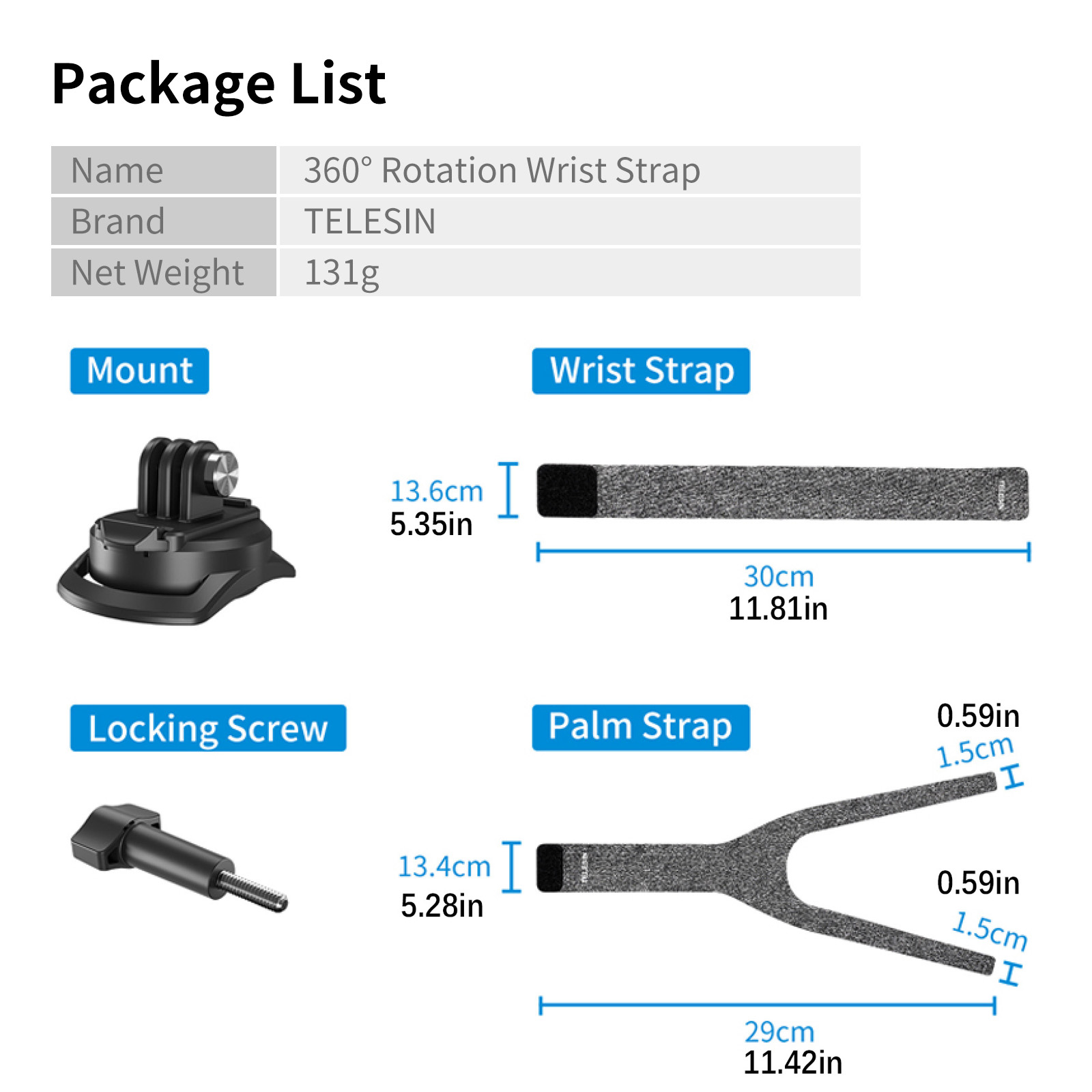 TELESIN 360 Degree Rotation Wrist Hand Strap Quick Adjust Band Holder Mount for GoPro Hero 10 9 8 7 Insta360 Osmo Action Camera