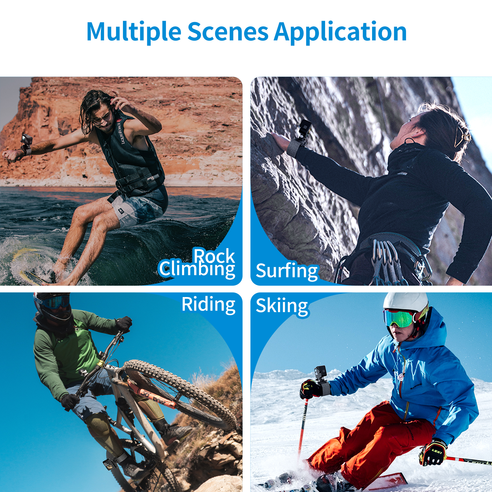 3. Multiple scenes application, like climbing, riding, surfing, skiing etc. Immersive continuous POV footage, selfies with unique perspectives, etc.