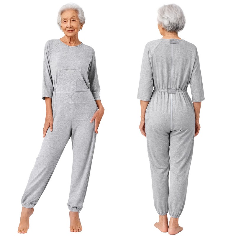 The double-end zip design on the back and legs makes it easy for caregivers to assist with dressing and undressing, enhancing practicality.