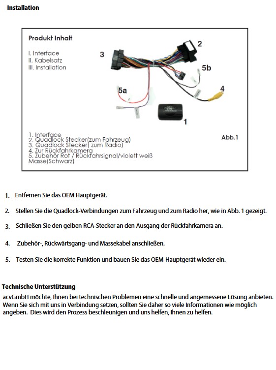 - Der Adapter ermöglicht den Anschluss einer NTSC Nachrüst-Rückfahrkamera mit Bildausgabe per Cinchstecker an ein originales Werksradio.